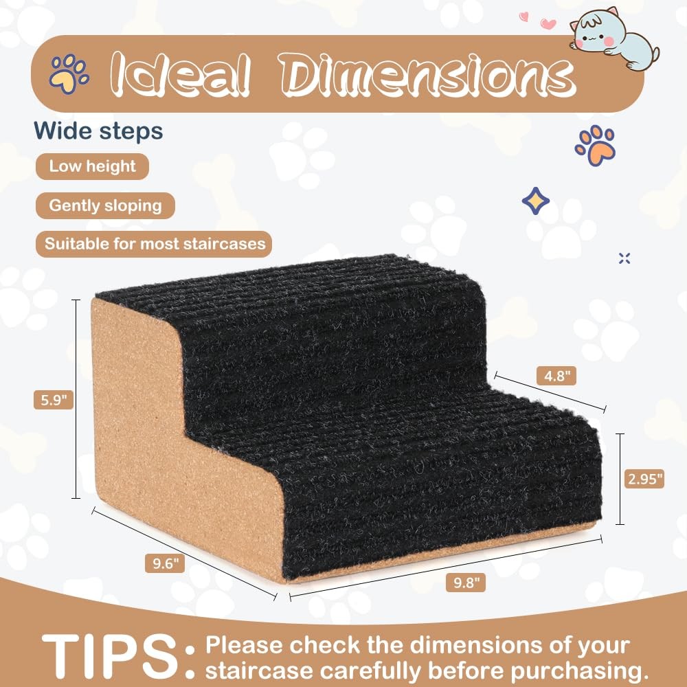 dog stairs for small dogs is an auxiliary pet stairs designed for stairs, providing great convenience for your furry friend (especially small breeds and old dogs) to go up and down the stairs easily and comfortably. We believe that it is a good choice for you to choose dog ramp. Low Slope Assistance: The dog ramp for stairs reduces the height and slope to minimize the risk of injury to your pet, making it easy for puppies and older dogs with joint pain to walk up and down the stairs. Practical & Beautiful: The overall dimensions of the dog stair ramp are 9.8"L x 9.6"W x 5.9"H. Wide range of applications and easy to use. The dog stairs do not take up space and harmonize with the interior decor. Non-slip & High Load-bearing: Each step of the pet stair is covered with non-slip cloth on the surface and non-slip strips are attached at the bottom. Strong load-bearing and anti-deformation collapse to ensure stable climbing for pets. High-quality Material: Our dog ramp is made of sturdy, safe and environmentally friendly materials, can be used indoors and outdoors. Initially received with a natural scent, the odor dissipates after a few days of placement. Various combinations of use: We have 1-piece and 4-piece dog stairs for you to choose. Multiple side-by-side can be used for small to medium breed dogs. Specifications Brand: Material: Cork Color: Brown Dimensions: 9.8"L x 9.6"W x 5.9"H Gently Sloping Pet Stair: dog stair ramps are specifically placed for use on stairs. Our pet ramp converts the step height of the stairs into a gentle slope, which is more suitable for small dogs (Yorkshire, Maltese, Chihuahua, Pomeranian, etc.) to climb easily and comfortably. And it effectively protects your dog's joints and reduces the probability of injury. Suitable for Most Staircase: The dimensions of our dog step is 9.8"L x 9.6"W x 5.9"H. Before purchasing, please make sure that your stair steps can accommodate the dimensions of our product. Simply place the dog stair ramp on the stairs and use it. Located on the side of the stairs, the stairs for dogs won't take up much space and will blend in with your home decoration. Non-slip & High Load-bearing: The surface of each step of the pet stair is covered with a large non-slip carpeting, which provides secure footing for your pet. Two anti-slip strips are attached to the base for a firm grip on the floor. The dog ramp for stairs have a high load-bearing capacity and are not easy to deform and collapse, providing stability for pets to climb freely. Durable Material for Indoor Outdoor Use: The dog stairs for small dogs are made from cork oak. The material is sturdy enough to improve stability and also allowing the dog steps to be used both outdoors and indoors. It will not be damaged by rain. For the first few days after receiving there will be a natural and safe “earthy” smell. The smell will dissipate after a few days of sitting. Free Combination Use: Our dog ramp for small medium dogs are available in 1-piece and 4-piece sets, with different combinations to meet your needs. Each piece measures 9.8"L x 9.6"W x 5.9"H. When you place two pet stairs side by side for use, each step is larger and can be used for medium pets.