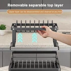 Over Sink Dish Drying Rack 2-Tier Stainless Steel Kitchen Shelf Cutlery Drainer Organizers 🍽️ Dish Drying Rack with Drainboard – Carbon Steel Kitchen Organizer | Cutlery Holder & Countertop Storage Keep your kitchen neat, organized, and efficient with this Carbon Steel Dish Drying Rack with Drainboard . Designed to hold plates, bowls, cups, and utensils, this compact rack frees up valuable counter space while ensuring your dishes dry quickly and hygienically. Its sleek, minimalist look blends seamlessly with any kitchen décor. 🌟 Features 1. Space‑Saving Organization This dish rack neatly stores plates, bowls, cups, and cutlery, helping you declutter your countertop and maintain a clean, organized kitchen. 2. Sleek, Modern Design The minimalist carbon‑steel frame and clean lines complement any kitchen style—from modern to traditional—while keeping your sink area looking tidy. 3. Hygienic Air‑Drying The included drainboard allows water to flow away from dishes, promoting natural air‑drying and preventing moisture buildup. 4. Compact & Convenient Sized to fit comfortably beside your sink or in a kitchen corner without taking up too much space. Perfect for small kitchens, apartments, or RVs. 5. Durable Carbon Steel Construction Made from high‑grade carbon steel for excellent stability and long‑lasting performance. Strong enough to hold multiple dishes without bending or warping. 📐 Specifications Material: Carbon Steel Color: Black (varies by listing photos) Size: 425 × 300 × 235 mm Mount Type: Countertop / Free‑Standing 🏡 Perfect For Everyday dish drying Small kitchens & apartments RVs & compact spaces Organizing plates, bowls, cups, and utensils Keeping countertops clean and clutter‑free 📦 Package Includes 1 × Dish Drying Rack 1 × Drainboard 1 × Cutlery Storage Holder ⚠️ Notes Colors may vary slightly due to lighting and monitor settings. Please allow 1–2 cm measurement differences due to manual sizing.