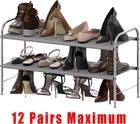 Stores up to 12-15 pairs of shoes, Additional bottom storage for slippers. Sturdy metal construction with washable 600 D polyester fabric, each shelf holding up to 30 lbs. Easy Assembly Personalized Storage: You can remove the panel to build into a 2-tier or 3-tier shoe rack to fit different kind of shoes. Great solution to keep your entryway, closet, dormitory, patio, mudroom and garage away from mess. Product Dimension: 11.2''D x 26.8''W x 15.1''H