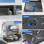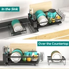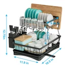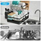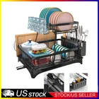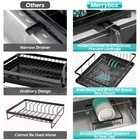 Over Sink Dish Drying Rack 2-Tier Stainless Steel Shelf Cutlery Drainer Kitchen US Ship About this item 【Detachable 2 Tier Dish Rack】 This drying rack for kitchen counter take a detachable 2-tier design. Together with a utensil holder, a cup rack, providing a large space for storing tableware such as dishes, plates, bowls, mugs, kitchen pots and frying pans. 【Auto-draining Drainboard】 The dish drying rack includes central drainage holes and a swivel spout, making sure the water flows directly into the sink, not onto the countertop.The swivel spout is 360° rotatable so you can put the rack next to the sink in the best position for your needs, and have it work. 【Rustproof and Sturdy】 The escurridor de platos is made of premium carbon steel with white powder finished. Corrosion Resistant and Rust Resistant are ideal for kitchen and food applications. the sturdy construction will provide a strong load-bearing to storing all your kitchenware easily. 【Assembly Without Tools】 No screws and tools are needed, you can easily assemble the dish rack drainer together. Just following the help of the installation manual, no tools included! It Only Takes 1 min to install a perfect dish drying rack with drainboard. 【Multifunctional Rack】 Besides drain board, this kitchen dish drying rack comes with a cup rack and a utensil holder, the side cutlery rack can hold various utensils, meet your needs for storing kitchenware. 【Easy Installation with a Simple Snap-Fit】 - Our Utensil Holder for Kitchen Counter Comes with a Cup Holder, a Cutting Board/Cookie Sheet Holder, a Knife and Utensil Holder, and an Extra Drying Mat. No Holes, No Tools, No Screws, It Only Takes a Few Minutes to Install a Perfect Drying Rack with a Simple Snap-Fit. Cool Kitchen Gadgets for Home & Family. Specifications: Material: Alloy (carbon steel) Product size: about 49*30*34cm/19.3*11.8*13.4in Product Type: Dish Drying Rack Color: Black Material: Carbon Steel, ABS Load Bearing: 15kg/33lbs Capacity: 20 x Bowls + 10 x Dishes + 4 x Cups + 10Pairs x Chopsticks + 5 x Knives + 8 x Utensils Packing List: Dish rack*1