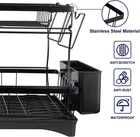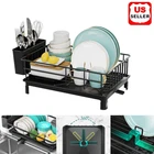 Over Sink Dish Drying Rack 2-Tier Stainless Steel Shelf Cutlery Drainer Kitchen US Ship About this item 【Detachable 2 Tier Dish Rack】 This drying rack for kitchen counter take a detachable 2-tier design. Together with a utensil holder, a cup rack, providing a large space for storing tableware such as dishes, plates, bowls, mugs, kitchen pots and frying pans. 【Auto-draining Drainboard】 The dish drying rack includes central drainage holes and a swivel spout, making sure the water flows directly into the sink, not onto the countertop.The swivel spout is 360° rotatable so you can put the rack next to the sink in the best position for your needs, and have it work. 【Rustproof and Sturdy】 The escurridor de platos is made of premium carbon steel with white powder finished. Corrosion Resistant and Rust Resistant are ideal for kitchen and food applications. the sturdy construction will provide a strong load-bearing to storing all your kitchenware easily. 【Assembly Without Tools】 No screws and tools are needed, you can easily assemble the dish rack drainer together. Just following the help of the installation manual, no tools included! It Only Takes 1 min to install a perfect dish drying rack with drainboard. 【Multifunctional Rack】 Besides drain board, this kitchen dish drying rack comes with a cup rack and a utensil holder, the side cutlery rack can hold various utensils, meet your needs for storing kitchenware. 【Easy Installation with a Simple Snap-Fit】 - Our Utensil Holder for Kitchen Counter Comes with a Cup Holder, a Cutting Board/Cookie Sheet Holder, a Knife and Utensil Holder, and an Extra Drying Mat. No Holes, No Tools, No Screws, It Only Takes a Few Minutes to Install a Perfect Drying Rack with a Simple Snap-Fit. Cool Kitchen Gadgets for Home & Family. Specifications: Material: Alloy (carbon steel) Product size: about 49*30*34cm/19.3*11.8*13.4in Product Type: Dish Drying Rack Color: Black Material: Carbon Steel, ABS Load Bearing: 15kg/33lbs Capacity: 20 x Bowls + 10 x Dishes + 4 x Cups + 10Pairs x Chopsticks + 5 x Knives + 8 x Utensils Packing List: Dish rack*1