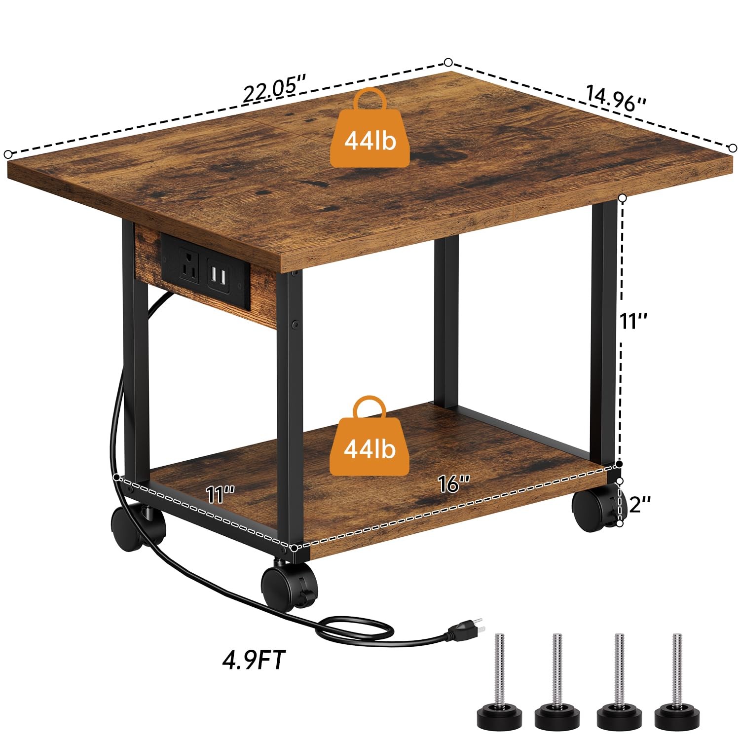 Printer Table, 2-Tier Under Desk Printer Stand with Charging Station, Printer Stand with Wheels, Printer Shelf for Small Spaces, PrinterCart for Home Office Rustic Brown Printer Stand with Charging Station: The printer stand with 1 outlet and 2 USB ports to easily charge printers, fax machine or mobile electronic devices. 2 tier printer stand's spacious top tabletop and bottom shelf provide extra space Printer Stand with Wheels: This printer table with 4 wheels can rotate 360 degrees, 2 wheels can be locked to keep the stand stable. Our printer table can also be placed under the desk, flexible and convenient Space-Saving: The printer cart size is 19"L x 14.9"W x 11"H, maximizes the use of both desktop and under-desk space, Keep your workspace neat and organized Sturdy Durable:The under desk printer stand is made of high-quality particleboard and a sturdy metal frame, ensuring reliable support for the printer, scanner, or other office supplies Easy Installation:The table for printer packages come with clearly labeled parts and a comprehensible instruction manual, no need for complex tools, quick and successful installation Printer Table for Home Office Features: 1. Top with More Storage: Wider design on top of the printer stand, size is (19"L x 16"W) for most printers or fax machines. 2. with Power Outlets and USB Ports: This desktop printer stand with 1 outlet and 2 USB ports to easily charge your e-devices. 3. Easy Assembly: Equipped with 4 wheels (2 lockable) and 4 flat feet, our small printer stand offers stability and easy maneuverability. 4. Home Helpers: Not only can it be used as a printer table, it can also be used as a storage shelf, Organize office supplies and Small household items. Specification: Color: Rustic Brown, Material: Particleboard , metal frame Tabletop Size: 19"L x 16"W x 11"H, Bottom Shelf Size: 16"L x 11"W Power Cord Length:4.9ft Product Weight: 9.1 Pounds Package Contents: 1 x Printer Stand 1 x Instructions Shipping We offer FREE shipping on all orders! We ship within Three business days of payment, usually sooner. We use a selection of shipping services such as UPS, FedEx, USPS etc. We only ship to the lower 48 states, no APO/FPO addresses or PO Boxes allowed. Local pickups and combined shipping options are not provided at this time. Return You can return a product for up to 30 days from the date you purchased it. Any product you return must be in the same condition you received it and in the original packaging. Please keep the receipt. Payment We accept payment by any of the following methods: PayPal Please pay as soon as possible after winning an auction, as that will allow us to post your item to you sooner! Feedback Customer satisfaction is very important to us. If you have any problem with your order, please contact us and we will do our best to make you satisfied. Contact Us If you have any queries, please contact us via ebay. We usually respond within 24 hours on weekdays. Please visit our eBay store to check out other items for sale! Thank you for shopping at our store.