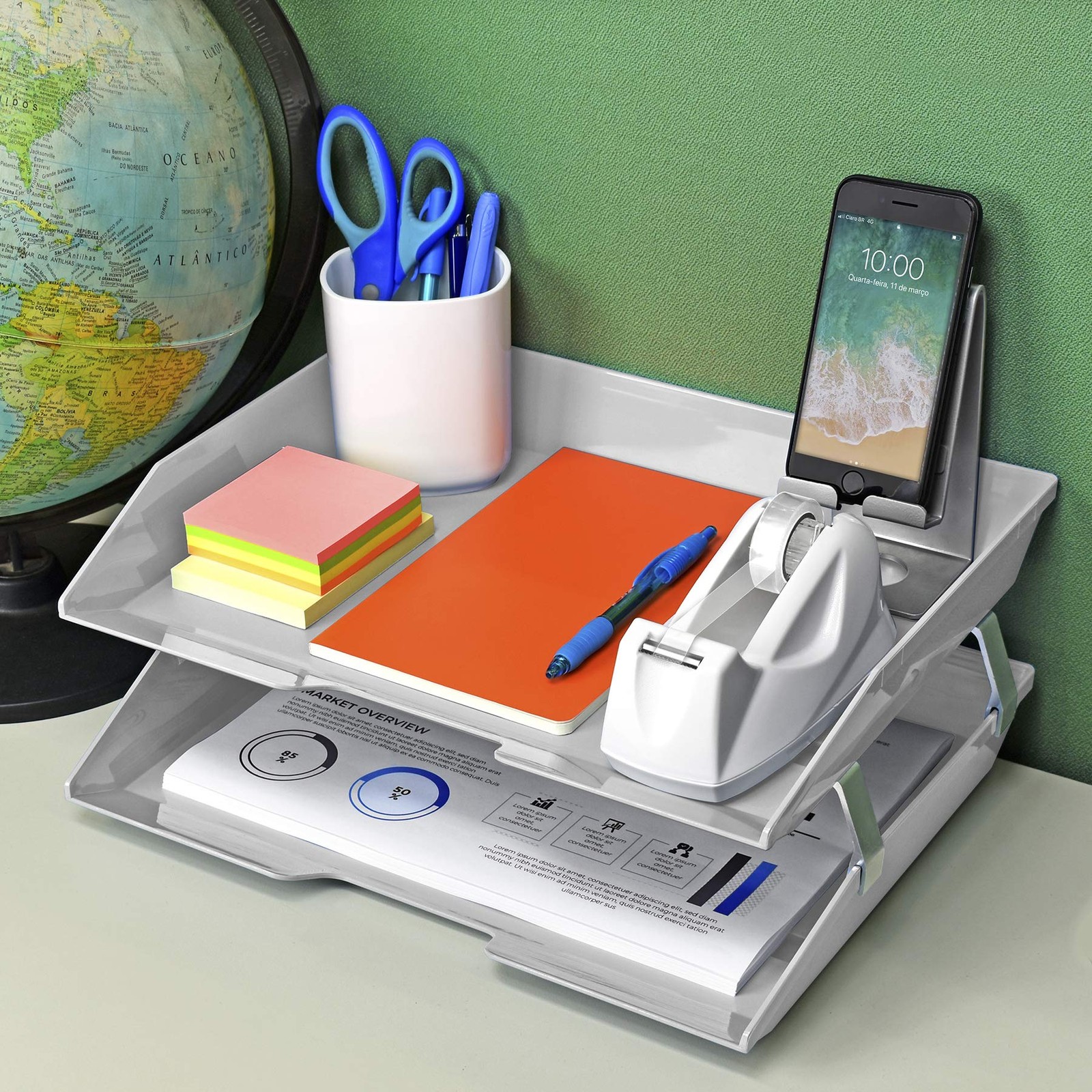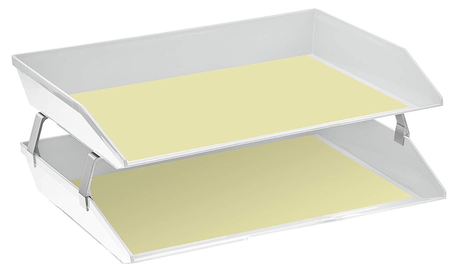 The Facility letter tray is made of high quality plastic, thick walls and metal brackets for unmatched durability and maximum stability, as well as anti slip and scratch bottom pad. Easy access to files. Features a slightly beveled on the front of the tray to prevent documents from slipping out. Additional brackets are available for extra levels (sold separately). Ideal for organizing documents, letters, files and much more. Perfect for offices, homes, clinics, hospitals, schools and many more. Accessories not included. Colors may vary due to different visual screen configurations. Others products available on Material: Constructed from durable plastic, ensuring longevity and resistance to wear and tear; Features sturdy aluminum brackets promoting extra height between double trays, enhancing stability and allowing for efficient organization of documents; Textured Surface and Beveled Front: The textured surface on the tray and the slightly beveled front of the letter tray prevent documents from slipping out, maintaining organization and preventing potential messes; Anti-Slip and Scratch Bottom Pads: Equipped with anti-slip and scratch bottom pads, providing additional stability and protecting surfaces from damage; Expandable Option: Additional brackets are available to add more levels (Sold separately on as Metal Support Brackets), offering flexibility to customize and expand storage capacity as needed; Sleek Desk Appearance: With dimensions of 14" x 10 1/2" x 5 5/8" when assembled, it boasts a compact and visually appealing design that enhances the aesthetics of any desk or workspace;