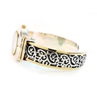 Beautiful 2Tone Western Style Bangle Cuff Watch by STC. The band is about 0.5 inches (14 mm) wide that will open to fit all wrists from 6.5 to 7.5 inches. The surrounding case is polished finish and has a white dial with gold hands and hours. \n\nCase Size is about 1x1.25 inch (27x32 mm)\nFits All Wrists from 6.5 to 7.5 Inches\nBand Width: 0.5 inch (14 mm)\nDecorated Band\nJapan Quartz Movement\n \n 2Tone Western Style Decorated Oval Face Womens Bangle Cuff Watch Beautiful 2Tone Western Style Bangle Cuff Watch by STC. The band is about 0.5 inches (14 mm) wide that will open to fit all wrists from 6.5 to 7.5 inches. The surrounding case is polished finish and has a white dial with gold hands and hours. Case Size is about 1x1.25 inch (27x32 mm) Fits All Wrists from 6.5 to 7.5 Inches Band Width: 0.5 inch (14 mm) Decorated Band Japan Quartz Movement < Product Attributes: Weight (lbs.) : 0.02 lb UPC: 00748296887744 Brand: ANT