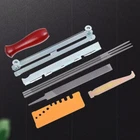 Features: 1、Made up of good material, have enough long lasting and durable 2、Chainsaw Sharpening Tool Kit is used to sharpen your chainsaw easily and quickly. 3、Comes with a pouch, easy to store and carry. 4、Easy and convenient to sue. 5、Good working condition, easy to install. 6、Specifications 7、Product name: Chainsaw files tool 8、Color: As is shown 9、Material:Metal 10、3 round files sizes: 5/32"(4.0mm) , 3/16"(4.8MM) , and 7/32"(5.5MM) for a pitch of 3/8"LP , 0.325", and 3/8" Package list 6 x Round Files 2 x Flat File 2 x Hardwood Handle 2 x Screw On File Guide 2 x Bar Groove Cleaner 2 x Carrying Pouch 2 x Depth Gauge Tool 2 x Quick Check Gauge Note Transition: 1cm=10mm=0.39inch Due to the light and screen difference, the item's color may be slightly different from the pictures. Please allow 0.5-2 cm differences due to manual measurement.