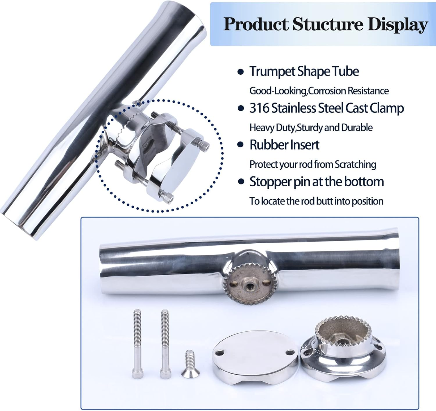 Store New Arrivals Add to Favorite View Feedback Contact (2X) 316 Stainless Tournament Style Boat Fishing Holder Clamp on Fishing Rod Holder for Boat 1-1/4" to 2" Rail Gimbal Pin at Bottom Description Mounting Type Rail Mount Color silver Material Rubber, Stainless Steel Material Type Rubber, Stainless Steel Fits Rod Size 2 Inches 1).High Quality ➯ Polished marine 316 grade stainless steel,Seawater corrosion resistance and and strong endurance. 2).White Rubber insert ➯ To protect your fishing rod from any wear against the stainless surface 3).Adjustable ➯ Rod holder can be adjusted to 32 different angles;Easy to install, mounting bracket includes bolts (allen key not included) 4).Clamp on rod holder➯Heavy duty cast clamp fits 1-1/4" to 2" Tube 5).Stopper slot ➯ Gimbal Pin built into the base of the rod holder to located the rod butt into position 6).Easy to install ➯These rod holders are easily mount on both horizontal and vertical rails.BOATS & YACHTS Rod Rests and Holders Product description Marinebaby (2X) 316 Stainless Tournament Style Fishing Holder Clamp on Fishing Rod Holder for Boat 1-1/4" to 2" Rail -Mirror polished Marine Grade Stainless Steel Fishing Rod Holder -316 Clamp to fit 1-1/4" to 2" Tube -Rubber insert avoid your fishing rod scratched and won't scratch you -Sturdy and durable.Resistance to rust and corrosion -Rod holder can be adjusted to 32 different angles -Easy to install, mounting bracket includes bolts (allen key not included) -Stopper slot built into the base of the rod holder to located the rod into position Strong and Durable FEATURES -Fishing Boat Rod holder can be adjusted to 32 different angles when mounted -360 Degree Adjustable Clamp Boat holer can be mounted to vertical or horizontal rails Gimbal pin -Locate the rod into position -Allow water to escape PVC rubber inner -No sharp edges -Protect your rod and won't scratch you 316 Clamp -Marine Grade 316 Stainless Steel Clamp -Adjustable from 1-1/4" to 2" Rail Good-Looking -Polished to a bright mirror finish -Gives a classic and durable addition to your boat 2Pcs adjustable Stainless steel rod holder for boat ABOUT US We offer the best prices around on high quality products. Our E-store includes media such as books, movies, music and games while offering electronics, toys, sporting apparel, clothing, tools, general home, garden items and more. SHIPPING We are always working hard to ensure your package arrives as soon as possible. Please understand that some factors like weather, high postal traffic, and the performance of shipping companies are outside of our control. We offer free shipping to the lower 48 states and ship within 2 business days of payment, usually sooner. We do not accept P.O. Boxes. Please provide a physical address. For shipping outside of the continental USA, we only use eBay's Global Shipping Program.The item is shipped to KY and then sent to the rest of the world. International customers are responsible for all duties and taxes. Continue to check out in order to calculate costs for shipping the item to your country. Messages regarding eBay's Global Shipping Program MUST be directed at eBay EXCLUSIVELY. RETURNS We offer a 30-Day Return Policy on items which you are not completely satisfied with. You have the option for a full-refund or an exchange of the item. No returns are available on items shipped outside of the USA. PAYMENT We accept PayPal. CONTACT US This page content is yet to come Please ad us to your favorite seller and visit again later Thank You CUSTOMER SATISFACTION We try our very best to make sure every customer is completely satisfied. If there's a problem, message us! We're happy to help. WE ACCEPT Copyright © 2021 AutoDS. | All Rights Reserved