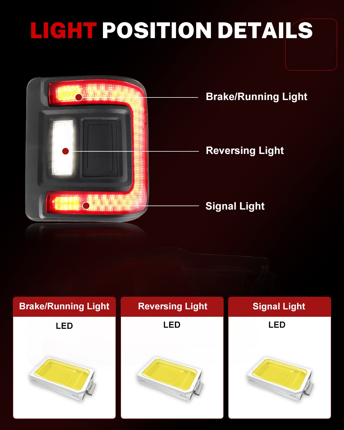 2X Flush Mount Smoked LED Tail Light Assembly for 2018-2024 Jeep Wrangler JL JLU