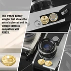 Brass Metal Battery Adapter LR44 to PX625,PX13,MR9 ,LR9,V625U,S62 5PX,MRB625 Description: 1.Made of high quality brass metal. 2.Battery Adapter for Film Camera Exposure Meter MR-9 PX625 PX13. 3.The adapter fits for LR44 or a 1.4v Zinc air battery. 4.The bottom is the positive electrode of the battery. Package Contents: 2pcs battery adapter( Battery is not included.) PX625 cameras The following cameras and finders were designed for and require a 1.35 volt cell: 625 mercury cell, an alternative cell of the correct voltage or an adapter. One cell per camera or finder unless indicated. The exposure meter in these cameras and finder require a 1.35 volt cell to be accurate, and some may require such a cell to work at all.