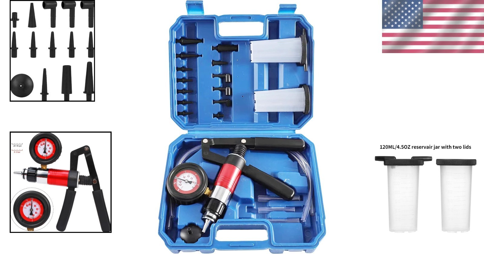 2-in-1 Handheld Brake Bleeder Kit Automotive Pump with Gauge Adapters for Cars ‹ › ‹ › ‹ › ‹ › ‹ › ‹ › ‹ › 2-in-1 Handheld Brake Bleeder Kit Automotive Pump with Gauge Adapters for Cars Multifunctional Excellence: Equipped with a vacuum gauge that allows for accurate data readings. Pressure range: 0-30 in Hg, 0-760 mm Hg, ensuring precision in performance. Includes accessories for both brake bleeding and automotive diagnostics. Versatile enough to and diagnose a multitude of parts and systems on motorcycles, trucks, pickups, and more. Effortless Single Operation: Designed to suck out waste oil and air while effectively guiding new oil into the system. Operate independently without the need for an assistant, making maintenance a breeze. Portable and Convenient: Handheld carrying case made from high-quality, durable materials. Lightweight yet rugged, ideal for home use and business applications alike. Easy to transport and store, ensuring it's always at your service. Complete Accessory Set: Includes a hand pump with gauge, 4.5 oz reservoir jar, 4 transparent hoses, and 8 adapters. All components are designed to meet your automotive needs seamlessly. Why Choose Our Handheld Brake Bleeder Kit? Elevate your automotive repair experience with our 2-in-1 Handheld Brake Bleeder Kit, a must-have tool for every car enthusiast. With its multifunctionality, you can easily perform brake bleeding and diagnose various vehicle systems with precision and ease. No more waiting for assistance—this kit grants you the autonomy you desire! Backed by over a decade of expertise in crafting high-quality auto repair tools, our commitment to quality is unsurpassed. Experience convenience, reliability, and quality—all packed into one incredible product. Order yours today to ensure your vehicle's optimal performance and safety. Shipping Free & Fast Shipping - We offer free shipping to most of the USA with a normal delivery time of 3-7 days. However, due to the current situation, additional delivery time (up to 3 weeks) may be required for some items. Alternative Carriers - We may use alternative carriers (e.g. USPS, FedEx, UPS, etc.) to ensure your package arrives safely and on time. Due to the use of multiple carriers, we are unable to provide a tracking number automatically. Handling Time - Orders are processed and shipped within 1-2 business days of receiving cleared payment. Shipping Restrictions - Shipping to Alaska, Hawaii, Puerto Rico, Guam, and other US territories may incur shipping charges or delivery restrictions. Please contact us before ordering, or your order can be refunded/cancelled. State Restrictions - There may be restrictions based on your state of purchase. For example, certain items may not be shipped to California due to state regulations. Contact for Tracking Updates - If you require tracking updates or have any concerns about the delivery of your order, please feel free to contact us, and we will be happy to assist you. Return 30-Day Hassle-Free Returns - We want you to be completely satisfied with your purchase. If you are not, you can return the item within 30 days of receiving it for a full refund or exchange. Easy Return Process - To start a return, simply contact us and we will provide you with a prepaid return shipping label and detailed instructions. Restocking Fee - There are no restocking fees for returns. However, the buyer is responsible for return shipping costs if the return is not due to a seller's error. Refund Processing Time - Refunds will be processed within 5 business days of receiving the returned item in its condition. Payment We accept all major credit cards, PayPal, and Apple Pay for your convenience. Your payment information is secure and encrypted to ensure a safe and seamless transaction. Please complete your payment within 3 days of purchase to avoid any delays in shipping. Feedback Your feedback is extremely important to us. We strive to provide the best products and customer service possible. If you are satisfied with your purchase, please take a moment to leave us a positive review. If you have any concerns or issues with your order, please contact us before leaving negative feedback. We are committed to resolving any problems and ensuring your satisfaction. Contact Us If you have any questions or concerns, please feel free to out to our customer support team. You can contact us through the eBay messaging system. We are available Monday to Friday, 9:00 am to 5:00 pm EST, and we will do our best to respond to your inquiry within 24 hours. Buy it now and enjoy a pleasant shopping experience! Manufacturer Part Number: Brake Bleeder Kit Unit Quantity: 2.75 Type: Brake Caliper Rewind Tool,Brake Bleeder Kit,Handheld Vacuum Pump,Brake System Bleeding Tools Unit Type: lb