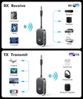 Elevate Your Wireless Audio Experience with the AUX Bluetooth Transmitter Receiver AUX Bluetooth headphone adapter seamlessly combines transmitter and receiver functionalities, giving you the flexibility to adapt to any audio scenario with the flip of a switch. Transmitter & Receiver Mode Transmit mode (TX): Used to send audio from a wired headphone jack, such as an airplane, TV, or gym treadmill, to your headphones or Bluetooth headset. In transmission mode, it can only be paired with your Bluetooth headset or Bluetooth, and cannot be paired with mobile phones, MP3 players, tablets, computers, etc. Receive mode (RX): Used to receive Bluetooth audio from a device (such as a smartphone or tablet) and send it to the AUX-IN port of a connected speaker (such as a car, boat, etc.). In receiving mode, it can only pair with your Bluetooth phone, MP3, tablet, etc. It cannot be paired with Bluetooth headsets and Bluetooth speakers. Effortless Connectivity and Compatibility Featuring both 3.5mm AUX and USB-C ports, the Bluetooth audio transmitter seamlessly integrates with a wide range of audio sources, from car stereos and home entertainment systems to smartphones and tablets. Its universal compatibility ensures a hassle-free wireless audio upgrade for all your devices. Hands-Free Calls with Noise Cancellation With its built-in microphone, the airplane Bluetooth adapter also supports hands-free calling in RX mode, ensuring crystal-clear voice quality thanks to advanced noise cancellation technology. Package Includes Bluetooth Transmitter and Receiver x1 Type-C Charging Cable x1 Dual 3.5mm Adapter x1 User Manual x1 【2-in-1 Transmitter and Receiver Functionality】 Bluetooth adapter for airplane supports both transmitting and receiving audio, allowing you to use it as a transmitter to convert non-Bluetooth devices into wireless-enabled ones, as well as a receiver to stream audio from your smartphone or other Bluetooth sources to your existing audio equipment. The seamless TX and RX modes provide maximum flexibility. 【Bluetooth 5.3 Technology】 Equipped with Bluetooth 5.3 technology, our Bluetooth transmitter provides a stable and robust wireless connection. With a 10-meter range and low latency, it ensures uninterrupted, high-quality audio even in signal-interference environments. Whether used as a transmitter or receiver, it guarantees a consistently excellent audio experience. 【Dual-Link Connectivity & Versatile Compatibility】 This airplane headphone adapter supports connecting two wireless headphones simultaneously, enabling you and your friends or family to enjoy movies and music together. Otherwise, our Bluetooth adapter offers extensive connectivity through 3.5mm AUX, and a Type-C charging port, ensuring seamless integration with a variety of audio devices. 【Extended Battery Life】 Featuring a high-capacity battery, Bluetooth airplane adaptor can provide up to 12 hours of continuous usage on a single charge. Whether you're using it as a transmitter to power your home theater or as a receiver for your wireless headphones during your commute, the long-lasting battery ensures uninterrupted wireless audio enjoyment. 【One-Touch Factory Reset】 Our Bluetooth transmitter for airplane includes a one-touch factory reset button for easy troubleshooting. Press the button to restore the adapter to its original factory settings, This streamlined troubleshooting solution ensures you can quickly get your wireless audio setup back on track, minimizing disruptions to your listening experience. NOTE: This product does not support musical instruments. We recommend that you use a professional adapter.