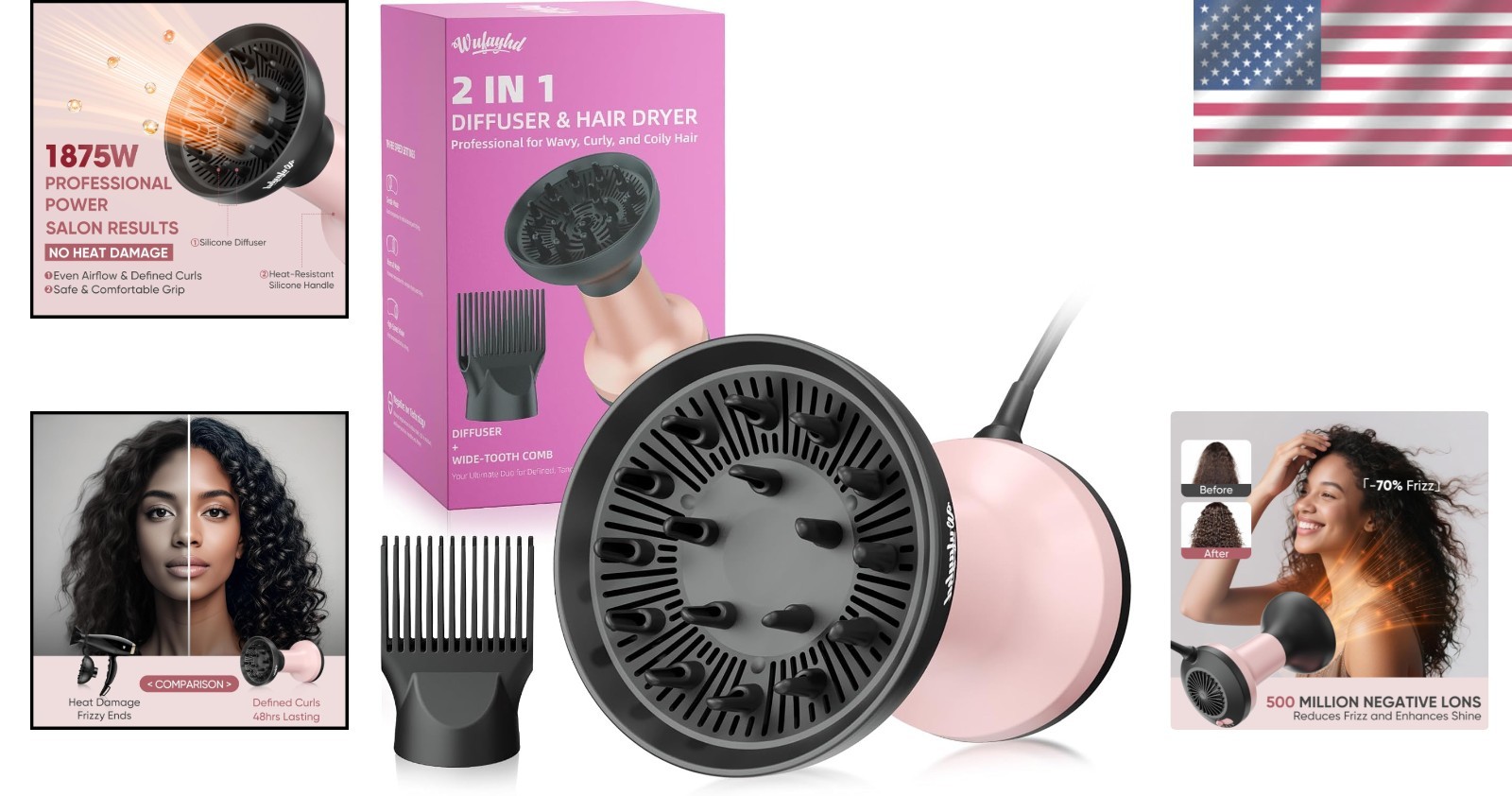 2-in-1 Diffuser Hair Dryer Curly Hair 1875W Ionic Fast Dry Reduce Frizz ‹ › ‹ › ‹ › ‹ › ‹ › ‹ › ‹ › ‹ › ‹ › ‹ › ‹ › 2-in-1 Diffuser Hair Dryer for Curly Hair Powerful 1875W Ionic Hair Dryer Define your curls with professional-grade power! The 2-in-1 Diffuser Hair Dryer boasts a robust 1875W motor that ensures fast drying while reducing heat exposure and locking in moisture. Experience how negative ions work to smooth frizz, reduce static, and enhance shine—perfect for all curl types from loose waves to tight coils. Key Features: 2-in-1 Styling Tool: Comes with interchangeable diffuser and wide-tooth comb attachments for versatile styling options. Fast, Salon-Level Results: High-performance blow dryer with strong airflow cuts drying time, locking in moisture for frizz-free curls. Precision Control: Features 3 airflow speeds and 2 heat settings, providing the right balance for enhancing volume or achieving sleek styles. Safe and Stylish: Lightweight design with heat-resistant silicone handle and ALCI safety plug ensures comfort and safety. Ultimate Curl Control: Achieve bouncy, defined curls anytime, anywhere with this travel-friendly size. Benefits: Quick drying to maintain healthy curls while reducing damage. Versatile styling with one convenient tool—perfect for busy mornings. Engineered for precision; enhances curl definition and shine without sacrificing moisture. Designed to be sleek and easy to use, making hair care a pleasure rather than a chore. Why Choose Our 2-in-1 Diffuser Hair Dryer? Why settle for ordinary when you can achieve extraordinary curls? Our 2-in-1 Diffuser Hair Dryer combines the power and precision of a professional salon tool with the convenience of home styling. Transform your hair routine with this lightweight, stylish hair dryer that enhances your natural curls and keeps frizz at bay. Don’t let ordinary styling tools hold you back—elevate your hair game today! Shipping Free & Fast Shipping - We offer free shipping to most of the USA with a normal delivery time of 3-7 days. However, due to the current situation, additional delivery time (up to 3 weeks) may be required for some items. Alternative Carriers - We may use alternative carriers (e.g. USPS, FedEx, UPS, etc.) to ensure your package arrives safely and on time. Due to the use of multiple carriers, we are unable to provide a tracking number automatically. Handling Time - Orders are processed and shipped within 1-2 business days of receiving cleared payment. Shipping Restrictions - Shipping to Alaska, Hawaii, Puerto Rico, Guam, and other US territories may incur shipping charges or delivery restrictions. Please contact us before ordering, or your order can be refunded/cancelled. State Restrictions - There may be restrictions based on your state of purchase. For example, certain items may not be shipped to California due to state regulations. Contact for Tracking Updates - If you require tracking updates or have any concerns about the delivery of your order, please feel free to contact us, and we will be happy to assist you. Return 30-Day Hassle-Free Returns - We want you to be completely satisfied with your purchase. If you are not, you can return the item within 30 days of receiving it for a full refund or exchange. Easy Return Process - To start a return, simply contact us and we will provide you with a prepaid return shipping label and detailed instructions. Restocking Fee - There are no restocking fees for returns. However, the buyer is responsible for return shipping costs if the return is not due to a seller's error. Refund Processing Time - Refunds will be processed within 5 business days of receiving the returned item in its condition. Payment We accept all major credit cards, PayPal, and Apple Pay for your convenience. Your payment information is secure and encrypted to ensure a safe and seamless transaction. Please complete your payment within 3 days of purchase to avoid any delays in shipping. Feedback Your feedback is extremely important to us. We strive to provide the best products and customer service possible. If you are satisfied with your purchase, please take a moment to leave us a positive review. If you have any concerns or issues with your order, please contact us before leaving negative feedback. We are committed to resolving any problems and ensuring your satisfaction. Contact Us If you have any questions or concerns, please feel free to out to our customer support team. You can contact us through the eBay messaging system. We are available Monday to Friday, 9:00 am to 5:00 pm EST, and we will do our best to respond to your inquiry within 24 hours. Buy it now and enjoy a pleasant shopping experience! Unit Quantity: 1 Features: Diffuser,Ionic Technology,Heat-Sensitive Handle,Comb Attachment,Travel Size,Lightweight Power Source: Electric,Corded Electric Power: 1875 Watt-hours Material: Plastic Type: Hair Dryer Color: Light Pink Number of Temperature Settings: 2 Number of Speeds: 3 Size: Travel Size