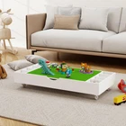2 in 1 Construction Play Table Compatible with Lego, Kids Activity Table with Storage and Wheels Building Bricks Play Table for Toddlers & Adults, Suitable for Storing Under Bed Or Sofa Product Description 【Multifunctional 2-in-1 Design】The building game table features a brick base on top, compatible with Lego, allowing children to engage in construction play. The other side has a smooth whiteboard for drawing, crafting, or other toys. 【Flexible and Convenient】This lego table with storage is designed for easy storage under beds or sofas. It includes grooves for easy lifting of the board, and the wheels can be easily removed if space is limited. 【Removable Dividers】The play table for toddlers comes with 12 removable dividers (except for the long center divider), providing ample storage compartments that can be easily rearranged to accommodate toys, crafts, and more, keeping your space tidy. 【High Quality】Made from high-quality MDF, the table surface features UV spray paint with a three-coat process, ensuring a perfect finish. UV spray paint is more environmentally friendly than traditional NC spray paint, with nearly zero CO2 emissions. 【Creative Gift for Kids & Adults】Compatible with Lego, Duplo, and other major building blocks, this kids table is sure to be a hit! It makes a great gift for Christmas, birthdays, or Children's Day for kids aged 3-12 or friends. Product Features This multifunctional 2-in-1 toy table is a limited-space play area! The sturdy Lego play table is easy to assemble and perfect for building blocks, puzzles, toy cars, and crafts. The large game board provides ample play space for multiple children, while the numerous storage compartments with adjustable dividers make it easy to store building blocks, train tracks, puzzles, and other toy components. It's ideal for keeping toys, games, and crafts together and within reach! The toddler lego table's base features removable wheels, allowing for easy placement under beds or sofas for convenient storage. Specifications Product Dimensions: 37.99" L x 18.7" W x 5.91" H Weight: 26.01 lbs Package Dimensions:41.73" L x 20.87" W x 3.54" H Package Weight: 29.43 lbs