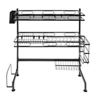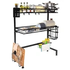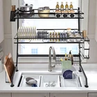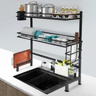 2-layer Over Sink Dish Drying Rack Moisture-proof Kitchen Shelf Storage Rack Description A multifunctional kitchen rack is the key to keeping the kitchen tidy. This 2-tier over-sink dish drying rack is made of high-quality carbon steel, which is sturdy, durable, and does not shake. Various types of storage baskets and high load-bearing capacity allow you to easily store various kitchen utensils to meet your daily needs. A reasonable and exquisite exterior design is both aesthetically pleasing and practical. With it, you will have a larger kitchen space and keep the kitchen clean. Key Features Sturdy and Durable: The high-quality carbon steel, baking varnish process and sturdy structure make it durable, wear-resistant, and not easy to rust. Large Storage Space: The different racks (plate rack, bowl rack, knife rack, chopping board rack, chopstick cage, sanitaryware basket) and 8 hooks can store bowls, plates, dishes and kitchen cleaning products separately. Meanwhile, the two separate compartments provide more convenience for categorized storage, and the top shelf can also be used as a shelf for different sizes of kitchenware . High Load-bearing Capacity: The stable triangular structure has a more even force and is less likely to tilt. The high load-bearing capacity of 22.05 lbs per tier ensures safe storage of all kinds of dishes and kitchenware. Sophisticated Design: You can place different kitchen utensils according to the spacing of the dish net (0.79 inches) and bowl net (1.57 inches). The chopstick basket, sanitary ware basket, knife rack, chopping board rack, and hooks can all be freely moved, and you can install tools according to your own needs. The hollowed-out panel allows water to drip directly into the sink, preventing water stains from contaminating the countertop and maintaining its cleanliness. Reasonable Size: The appropriate size(25.6*11.02*32.28-inch) allows you to avoid touching your head, blocking your hands, or obstructing your vision, making it more convenient to use. At the same time, it effectively utilizes the space above the sink, freeing up your countertop space, which is especially suitable for small kitchens/apartments. Convenient for Cleaning: The smooth surface and open construction make the product easier to clean with a rag. Simple Installation: The detailed installation diagram, the complete installation parts and the simple structure make the installation easier. Beautiful Appearance: The full color and classic black make it harmonious with the kitchen. Details High Guardrail: The 2.36 inches guardrail can help you protect kitchen utensils such as dishes from falling off easily, making your use more reassuring. Anti-slip Suction Cup: The height of the anti-slip suction cup at the bottom can be adjusted according to the countertop of the kitchen sink, further increasing its stability. Application It is suitable for storing seasonings, dishes, chopsticks, cutting boards, knives and forks, soaps, sponges, cutting boards, even fruits and vegetables, and other kitchen supplies in the kitchen. Specification Color: Black Style: Modern Martial: Carbon Steel Shape: Rectangular Assembly Required: Yes Number of Shelves: 2 Process: Baking Varnish Mounting Type: Over Sink/Kitchen Countertop Load-bearing(Each Tier): 10kg/22.05lb Product Inner Length: 62cm/24.41in Leg Rail Height: 9cm/3.54in Top Tray Width: 25.5cm/10.04in First Tier Spacing: 21cm/8.26in Second Tier Spacing: 36cm/14.17in Dish Net Spacing: 2cm/0.79inch Bowl Net Spacing: 4cm/1.57inch Overall Product Size: 65*28*82cm/25.6*11.02*32.28inch Package Size:78*19*13.5cm/30.71*7.48*5.31inch Guardrail Height: 6cm/2.36inch Gross Weight: 4kg/8.82lb s Net Weight: 3.7kg/8.16lbs Package Included 1*2-Tier Over Sink Dish Drying Rack 1*English Installation Diagram All Accessories for Assembly Notes Please measure the relevant dimensions before purchasing. Please carefully measure 3 numerical values before buying: the width of the sink should be ≤ 24.41 inches, the height of the faucet should be ≤ 17.72 inches and the faucet to wall distance should be >1.38 inches. Please use a damp towel to gently wipe it off. Please allow the s li ght color difference caused by the shooting light and the 1-3cm error due to manual measurement, and make sure you do not mind before ordering. Payment Delivery details Terms of sales About us Contact us Payment We accept ebay payment 。 Fees such as import duties, taxes are not included in the item price or shipping costs. These charges are the buyer's responsibility. Delivery details Shipping: 2-9 working days to: USA Terms of sales We maintain high standards of excellence and strive for hundred percent customer satisfaction. Feedback is very important to us. We hope that you contact us immediately before you give neutral or negative feedback, so that we can address your concerns. It is impossible to address issues if we do not know about them! About us Your satis faction is our ultimate goal. We work hard to earn your trust and future business. Our certified technicians have tested each item before shipping. The unit comes with 1 year limited warranty on all manufacturing defects. a) If you receive a defective item, you may return it or ask for a discount. Please contact us within 14 days after you receive the package. b) What you returned must be intact and in its original packaging as re? u. Customer is responsible for shipping costs of the returned item. c) We will cover the cost of shipping back t with the shipping rate indicated in the registration page. We will send you a new unit or refund the full payment you paid. Thank you. Contact us Business Hour Business Hour: Monday To Friday: 8:30 AM to 5:00 PM (Beijing China time) Due to time zones, our reply to your questions may not be immediately. But within above working time, we will reply your email within 24 hours. If it's non-workdays, please kindly be patient and wait till Monday. Please contact us with ebay message. Please feel