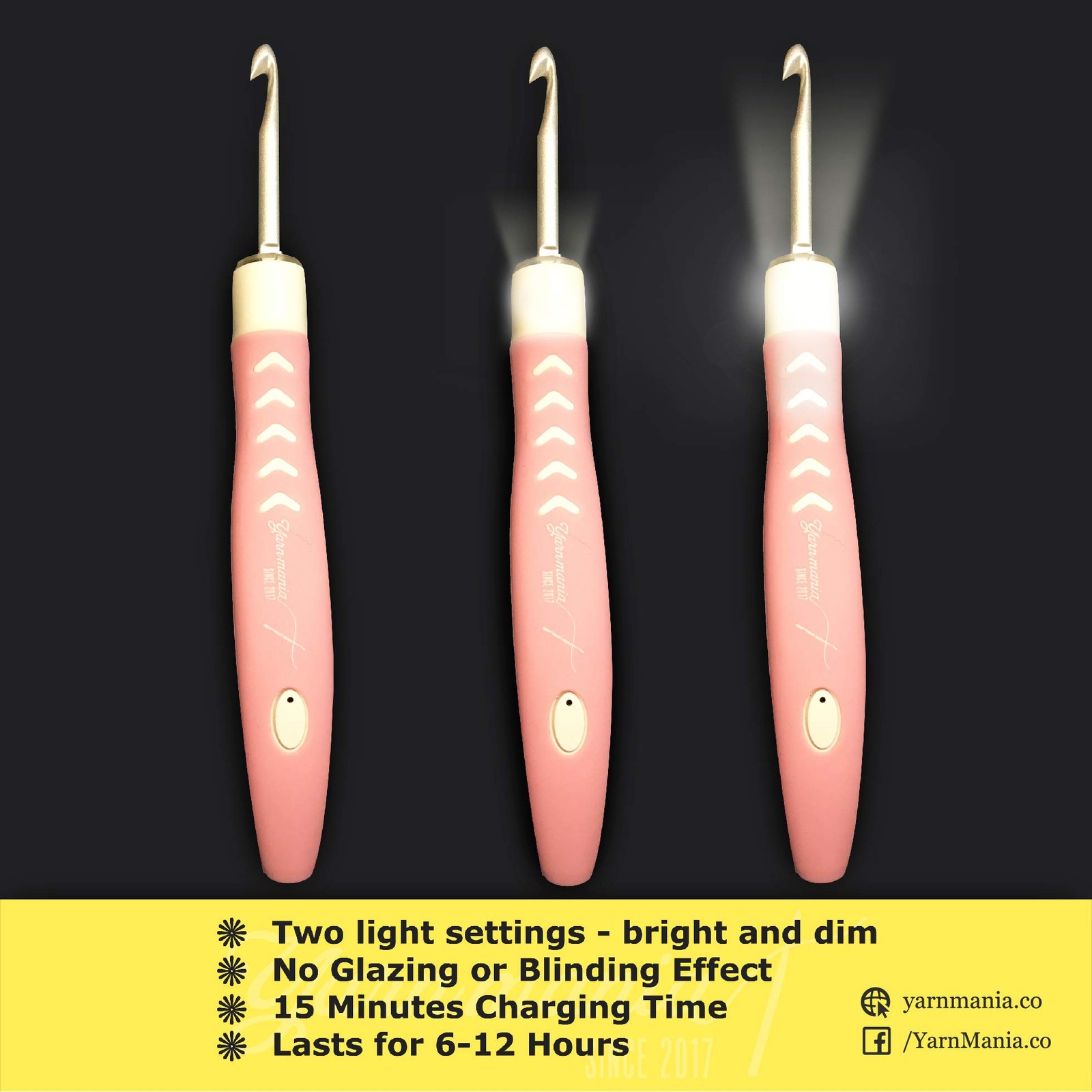These light-up crochet hooks are a game-changer! The rechargeable handle is so convenient, and the adjustable brightness lets me work comfortably even in low light. The 9 interchangeable sizes make it easy to switch between projects, and the grip feels great in my hands. No more straining my eyes—now I can crochet anywhere, anytime. Highly recommend for anyone who loves crafting on the go or in dim spaces!