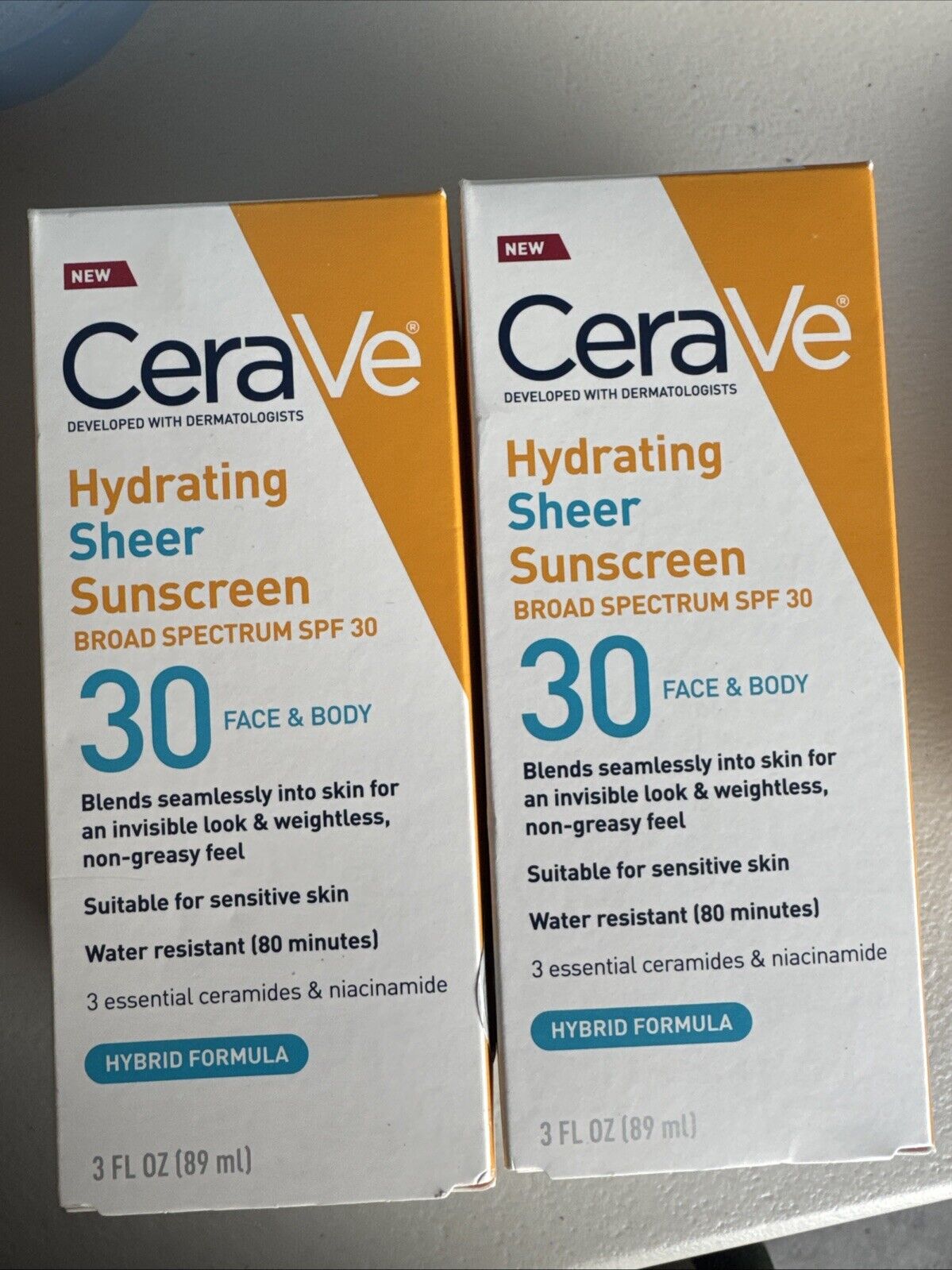 2-pack CeraVe Hydrating Mineral Sunscreen SPF 30 for Face and Body 3oz Exp 12/26
