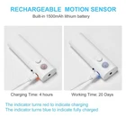 LED Strip Light 【PIR Motion Sensor & Manual Mode】LED strips with motion sensors can switch between smart sensor mode and manual mode. Manual mode: Switch the lights on and off using the ON/OFF button. Smart sensor mode: Automatically turns on when it detects human movement in the dark (2-5 m range), automatically turns off after 20 seconds without movement. 【60 high-brightness LED light beads & 6000K cool white light】Battery-powered LED strip with 60 LEDs that produce a bright, cool white light with a color temperature of 6000 K. Ideal for nighttime orientation – perfect for closet lighting, stair lighting. 【Long battery life & auto shut-off】The rechargeable 2200mAh 18650 battery with large capacity lasts for 1 month with 10 activations per day. Charging via USB port, the battery can be fully charged in 3.5 hours. Perfect as a battery-powered LED strip for any room! 【Battery powered & suitable for various scenarios】The battery-operated LED strip is powered by an integrated lithium-ion battery and charged via a USB cable. It is suitable for various scenarios such as cabinet, kitchen, stair, hallway, bedroom, bathroom, garage, basement, etc. 【Self-adhesive tape on the back & can be cut to size】Thanks to the strong self-adhesive tape on the back, installation takes just a few seconds. Suitable for all smooth surfaces. The light strip can be cut to any size to meet different size requirements.