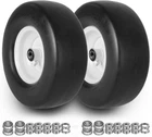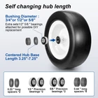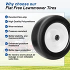 Precautions:this tire is not suitable for highway use, and do not park or idle for a long time to avoid flat formation on the tread place。 way to get back flat: If there is flatness, please keep using it normally in the car. The principle of thermal expansion and contraction will automatically recover after half an hour of use. Packing List Parameters: 13x5.00-6”Flat Free Lawn Mower Tire Specification: Tire Mode: 13x5.00-6" Quantity:2pcs Tire Diameter:13"" Rim Diameter: 6" Tire Width: 4.6" Hub Depth: 3.25"-6.9" Centered Hub Precision bearings size: 1/2"and3/4" and 5/8" Load Capacity: 500 lbs Precautions:Do not apply to roads, and long-term static parking s This tire is different from the rubber on the market。Never use recycled rubber for production, ensuring very reliable quality! 【13x5.00-6 TIRE AND WHEEL ASSEMBIY SIZE】:13" tire diameter,4.6" tire width, 6" rim diameter.3/4" bearings/borehole size(Extra sets of φ1/2"φ5/8" bearings for possible DIY ),3.25" centered hub length. Before placing an order please be sure to check the size of the tire and the size of the bearing hole,and 3.25" centered hub length.(Refer to Figure 2) 【EASY TO INSTALL ADJUSTABLE ACCESSORIES】:3/4" bearings on the tire with most machines on the market,We also prepared sets of 5/8" bearings to avoid improper size and replace them。8pcs* 0.44" and 2pcs* 0.24" wide wheel metal spacers Extendable Hub Center Length 3.25"-6.9" 【SOLID TIRES】:Lawn mower tires made of solid polyurethane foam, smooth tread, maintenance-free, puncture-resistant, solid tires with the bounce and cushioning power of pneumatic tires, no air leakage. The maximum load capacity is 500 lbs. 【WIDELY USED】: this lawn mower tire will fit most zero-turn lawn mowers and will also fit garden carts, wheelbarrows, wheelbarrows, generators, pressure washers, air compressors and other types. 【PRECAUTIONS AND MAINTENANCE】:This tire is made of solid polyurethane for durability,Note, do not use for highway, highway will affect the appearance of the tire, but not the use. Tires will cause flat spots in long time parking, but will repair automatically during use. Our bearings are greased cast iron bearings, which last 3-5 times longer than ball bearings。