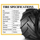 listing template VISIT OUR STORE SIGH UP FOR EMAIL 2pcs 24x12-12 Lawn Mower Super Lug Tires 6 Ply Heavy Duty 24x12x12 Tubeless Specifications: Tire Size: 24x12.00-12 Rim Diameter(in): 12 Section Width(mm): 304 Rim Width(in): 9.5 Tire Load Range: 6PR/C Load Index(lbs): 2270 Speed Index: 9A3 Tread Depth(mm): 15.8 Max PSI: 32 TL: Tubeless Package Includes: 2 x Tires Shipping Policy 1. Ship worldwide from New Jersey by reliable shipping companies -- USPS, UPS, FEDEX, DHL, etc., and only to VERIFIED PAYPAL ADDRESS. Transport Delivery ETA. Package handling only takes 1 business day at our warehouse, so please make sure entering correct payment and shipping information before checking out. Once your payment is completed, we are not going to accept any more changes to your order. 2. International Buyers – Please Note: a. Import duties, taxes and charges are not included in the item price or shipping charges. These charges are the buyer's responsibility. b. Please check with your country's customs office to determine what these additional costs will be prior to bidding/buying. 3. Please check your shipping address carefully before checkout, it can't be changed if order completed. 4. Orders placed on weekend will be shipped within 2 days.Notification of shipment with tracking number will be sent to buyers. 5. Standard shipping: 2-7 business days Expedited Shipping: 2-3 business days One-day Shipping: 1 business day International shipping: Varies 6.Ship within 1 business day once payment completed. Notification of shipment with tracking No. will be sent to buyer. 7.We offer discounts for combine shipping. Please contact us first if you need combine shipping, and an invoice with discount will be sent to you. 8.Please allow 5 business days for delivery to US destinations on any eBay orders and 14 business days for delivery to any International destinations. We highly recommend our buyer choose priority/expess mail for international delivery which is much more stable. Return Policies 1. Refunds given only if item DOA and cannot be replaced via PAYPAL . If so, Please contact us with 5 days since you receive the item and and return to us within 30 days from the delivery date for exchange or refund. 2. If you need return, please contact our customer service representative, let us know the detailed problem and send us some pictures for confirmation. Payment Payment should be sent within 8(EIGHT) days of auction closing. Feedback If you are dissatisfied for any reason, please do not be quick to leave negative/neutral feedback. We work hard to make sure EVERY CUSTOMER 100% SATISFIED and resolve any problem for you. Work Time Work Time: Monday to Saturday About Us | Newsletter| Feedback| Contact Us Copyright © 2022 LikeDeal. All rights reserved. 无标题文档 2pcs 24x12-12 Lawn Mower Super Lug Tires 6 Ply Heavy Duty 24x12x12 Tubeless Specifications: Tire Size: 24x12.00-12 Rim Diameter(in): 12 Section Width(mm): 304 Rim Width(in): 9.5 Tire Load Range: 6PR/C Load Index(lbs): 2270 Speed Index: 9A3 Tread Depth(mm): 15.8 Max PSI: 32 TL: Tubeless Package Includes: 2 x Tires Shipping + 1. Ship worldwide from New Jersey by reliable shipping companies -- USPS, UPS, FEDEX, DHL, etc., and only to VERIFIED PAYPAL ADDRESS. Transport Delivery ETA. Package handling only takes 1 business day at our warehouse, so please make sure entering correct payment and shipping information before checking out. Once your payment is completed, we are not going to accept any more changes to your order. 2. International Buyers – Please Note: a. Import duties, taxes and charges are not included in the item price or shipping charges. These charges are the buyer's responsibility. b. Please check with your country's customs office to determine what these additional costs will be prior to bidding/buying. 3. Please check your shipping address carefully before checkout, it can't be changed if order completed. 4. Orders placed on weekend will be shipped within 2 days.Notification of shipment with tracking number will be sent to buyers. 5. Standard shipping: 2-7 business days Expedited Shipping: 2-3 business days One-day Shipping: 1 business day International shipping: Varies 6.Ship within 1 business day once payment completed. Notification of shipment with tracking No. will be sent to buyer. 7.We offer discounts for combine shipping. Please contact us first if you need combine shipping, and an invoice with discount will be sent to you. 8.Please allow 5 business days for delivery to US destinations on any eBay orders and 14 business days for delivery to any International destinations. We highly recommend our buyer choose priority/expess mail for international delivery which is much more stable. Payment + Payment should be sent within 8(EIGHT) days of auction closing. Returns + 1. Refunds given only if item DOA and cannot be replaced via PAYPAL . If so, Please contact us with 5 days since you receive the item and and return to us within 30 days from the delivery date for exchange or refund. 2. If you need return, please contact our customer service representative, let us know the detailed problem and send us some pictures for confirmation. Feedback + If you are dissatisfied for any reason, please donot be quick to leave negative/neutral feedback. We work hard to make sure EVERY CUSTOMER 100% SATISFIED and resolve any problem for you and always leave positive feedback to all our customers. Contact us + Work Time:Monday to Saturday Reply + All replies will be sent to your email box, if you don't get response within 24 hours (Sat. & Sun. excluded) please check your eBay My Messages in case that our emails will be filtered automatically by your settings. Copyright © 2022 LikeDeal. All rights reserved.