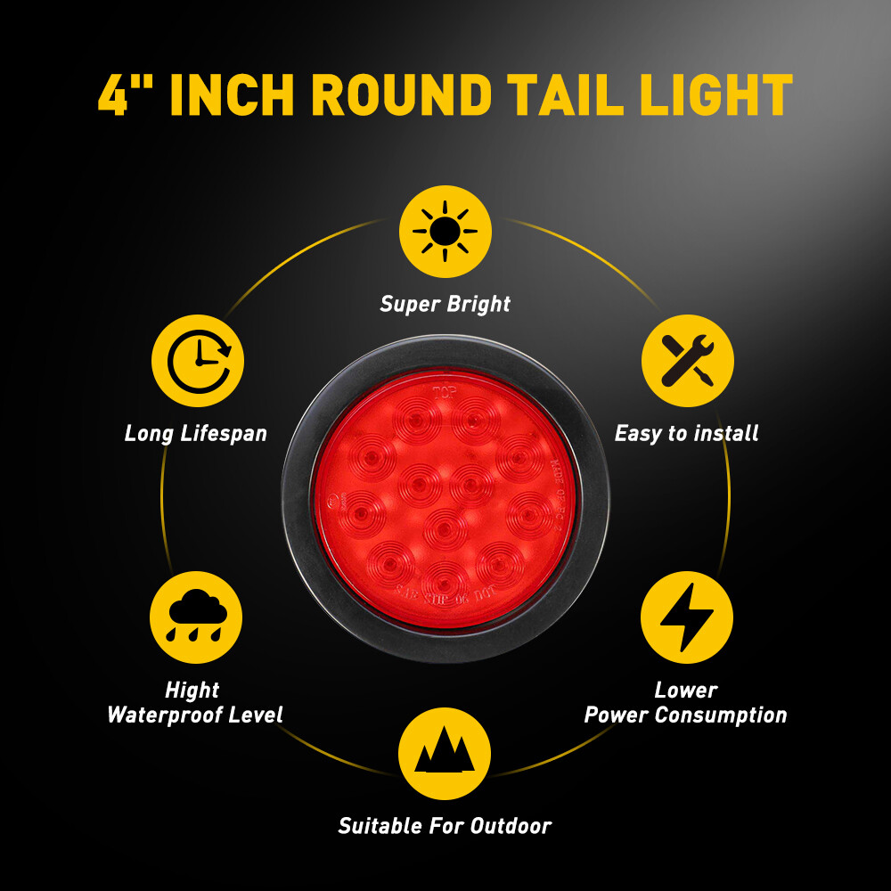 Pair 4 inch Red 12 LED Round Tail Rear Stop Brake Lights 12V for Truck Trailer Specification Color: Red Voltage: 12V Number of Bulb: 12 LED Material: ABS+PC+Rubber Waterproof rate: IP67 Outer Diameter: 130mm/5.1 inch Inner Diameter: 105mm/4.1 inch Function: Stop/ Turn/ Tail Light/ Backup Reverse light Placement on Vehicle: Front/Rear, Left/Right Suitable model: Universal for Trucks, trailers, tractors, semi-trailer, Dump Truck, bus, boat, special vehicle, and etc. Fits for heavy duty trucks like Peterbilt, freightliner, international ,Kenworth, mack, and so on Wire Connection: 2pcs 4" Red 12 Tail LED Rear Stop Brake Running Lights for Truck Trailer Boat Pair 4 inch Red 12 LED Round Tail Rear Stop Brake Lights 12V for Truck Trailer Specification Color: Red Voltage: 12V Number of Bulb: 12 LED Material: ABS+PC+Rubber Waterproof rate: IP67 Outer Diameter: 130mm/5.1 inch Inner Diameter: 105mm/4.1 inch Function: Stop/ Turn/ Tail Light/ Backup Reverse light Placement on Vehicle: Front/Rear, Left/Right Suitable model: Universal for Trucks, trailers, tractors, semi-trailer, Dump Truck, bus, boat, special vehicle, and etc. Fits for heavy duty trucks like Peterbilt, freightliner, international ,Kenworth, mack, and so on Wire Connection: Black wire : low brightness (red) Red wire : high brightness (red) White wire : negative pole Features: *High brightness: Each led light has 12 high quality LEDs to output a super bright light, which sealed with a rubber grommet. *Superior material: Durable PC lens with rubber grommet housing welded together to ensure a permanent and water-proof seal. *Waterproof: The tail light is highly silicon sealed with an IP67 waterproof rating, which works even under extreme conditions such as rain and snow. *Easy to install: Come with rubber grommet & plug,drilling and hardwiring are not required *Wide application: Compatible for trucks, trailers, tractors, semi-trailer, Dump Truck, bus, boat, special vehicle, and etc. Fits for heavy duty trucks like Peterbilt, freightliner, international ,Kenworth, mack, and so on Note: Please check the detail information carefully before purchasing Please allow 1-2mm in size measurement chart for variance due to manual measurement Please excuse us from any possible typos and unintentional misinterpretations Your satisfaction is our utmost concern, please feel free to contact us for any questions and concerns Package Include: 2x 4" 12 LED Round Tail Lights Item Specifics Product Name Red LED Marker stop turn signal tail light Dimension 4 inch Fit for For Pickup,truck trailer,boat,Lorry,Van,caravan Certifications DOT SAE Lens Color Red Brand AUXITO Bulb Type Tail Light Manufacturer Warranty 2 Year Feature For Peterbilt FREIGHTLINER KENWORTH etc. Application Universal For Any 12V Vehicles Heavy Duty Trucks Position Stop Turn Tail Marker Clearance Light Lamp Waterproof IP67 Manufacturer Part Number A1 Placement on Vehicle Front Rear Left Right Inner Outer Fitment Type Direct Replacement Lighting Technology LED Number of Bulbs 2 Light Color Red Type Tail Light Universal Fitment Yes Bulb Life Hours Up to 50,000 Hours Payment Variety of payment methods are accepted, such as credit, debit, gift cards, Apply pay, Google Pay, Paypal and Paypal Credit. Shipping 1. All items will be shipped in 24 hours after receiving your payment . 2. We ship this item to US only via USPS first class mail. It usually takes 3-5 working days to deliver. Returns 1. We offer 60 days return policy. 2. Please contact us if you have any questions with the products . 3. Refund will be sent after we got your returned package. 4. All returned items should be in the original packaging with tracking number. Contact Us We work from Monday - Saturday 9:00AM - 6:00PM, but we will reply once we get your message. There will be delay on response if you send message or E-Mail on Sunday. DESCRIPTION PAYMENT SHIPPING RETURN POLICY CONTACT US Shop Category Store Home LED Headlight ◈ 9005 HB3 ◈ 9006 HB4 ◈ H7 LED Fog Light ◈ H8 H9 H11 LED Plate Light LED Reverse Light LED Brake Light Rear Bumper Light LED Tail Light Tail Light assemblies Car Parts & Accessories ◈ LED Third Brake Light ◈ Other Parts & Accessories Other New List Item 2PC White Round Trailer Lights 10LED Stop Turn Running Tail Brake Lamps Truck 4" USD 21.99 For Dodge Ram 1500 2500 3500 Heated Driver Left Side Upper Towing Mirror Glass I USD 24.99 Rear View Backup Camera Kit w/ Wiring & Tailgate Handle for 97-06 Ford F150 F250 USD 43.99 Fit 16-21 Chevy Camaro Amber Red LED Strip "SMOKE"Side Marker Parking Light Lamp USD 34.99 2/4Pcs H4 9003 HB2 LED Bulbs Hi/Low Adjustable Beam 6500K Xenon White Headlight USD 33.99 Hot Item Rubber Seal Trim Prevent Water Leakage Windshield Sunroof Roof Top Window 10FT USD 12.99 Rubber Seal Trim Prevent Water Leakage Windshield Sunroof Roof Top Window 10FT USD 10.99 AUXITO Combo 4 9005 + H11 LED Headlight Kit Bulbs High Low Beam White 80000LM USD 35.99 FOR 94-04 MUSTANG PASSENGER or DRIVER SIDE MASTER POWER WINDOW CONTROL SWITCH USD 9.99 Auxito 9005 + H11 Combo LED Headlight 120W 80000LM High/Low Beam 6500K Bulbs Kit USD 46.99 Similar Item Excellent Delivery 2pcs 4" Red 12 Tail LED Rear Stop Brake Running Lights for Truck Trailer Boat Pair 4 inch Red 12 LED Round Tail Rear Stop Brake Lights 12V for Truck Trailer Specification Color: Red Voltage: 12V Number of Bulb: 12 LED Material: ABS+PC+Rubber Waterproof rate: IP67 Outer Diameter: 130mm/5.1 inch Inner Diameter: 105mm/4.1 inch Function: Stop/ Turn/ Tail Light/ Backup Reverse light Placement on Vehicle: Front/Rear, Left/Right Suitable model: Universal for Trucks, trailers, tractors, semi-trailer, Dump Truck, bus, boat, special vehicle, and etc. Fits for heavy duty trucks like Peterbilt, freightliner, international ,Kenworth, mack, and so on Wire Connection: Black wire : low brightness (red) Red wire : high brightness (red) White wire : negative pole Features: *High brightness: Each led light has 12 high quality LEDs to output a super 