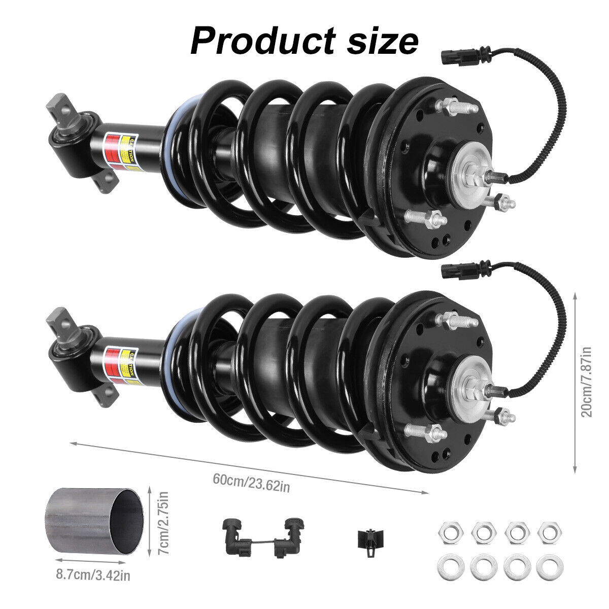 Pair Front Shock Absorber Strut Assys 84176631 for Chevy Tahoe Suburban Magnetic Autoparts-Accs Introduction: Autoparts-Accs has been providing the quality products in automotive parts & accessories for years. Being a professional e-Bayer that provides you guys the greater shopping experiences is out mission. Product 100% Brand New Product, Quality Ensured, Provide You the Best Confident and Support! 90 Days Warranty, Money Back Guarantee, No Risk, No Hassle! Shipping Free Shipping. Handling time: 1 Business day. Item is shipped to ebay address.Leaving correct.address can minimize delay. Tracking information. will be sent once item is shipped. Contact We have a friendly and dedicated support teams to handle any problems you come up with our products. Please contact us first via email or message for replacement, refund or technical problem caused by any reason. Description: Autoparts-Accs 1 Pair Front Loaded Quick shock Struts Magnetic Ride for 15-20 Cadillac Escalade 👀【Compatible Vehicle】Our MRC front struts and shocks complete assembly are compatible with Cadillac Escalade 2015-2020, for Cadillac Escalade ESV 2015-2020, for Chevrolet Silverado 2015-2020, for Chevy Suburban 2015-2020, for Chevy Tahoe 2015-2020, for GMC Yukon Denali 2015-2020, for GMC Yukon XL Denali 2015-2020. 👀【Replacement Part Number】84176631 84977478 84061228 580-1108 580-1032 23151123 23464589 23312167 75-22345 75-877692B 17522345-101 17522345-102 17522345-103 17522345-104 23151115 23151116 23151117 23151118 23151119 23151120 23151121 23312152 23312153 23312155 23312156 23312158 22283444 22300918 23464582 23464583 23464585 23464586 23464587 23464588. 👀【Magnetic Ride Control】Kalmaegee front struts shock absorber assembly is equipped with Magnetic Ride Control, providing you with the same adaptive suspension system as the original ones. Our shocks absorbers are made with high-quality materials, including alloy coil springs and high-strength metal outer pipes with welding process, providing better toughness, durability, and seismic performance. 👀【Easy Installation】Our front struts shock assembly comes with coil springs included, making installation a breeze. No need to purchase additional parts or accessories. Simply replace your old, worn-out struts with our high-quality ones and enjoy a smoother, more comfortable ride. 👀【SPEED Service】If you have any questions or concerns, please don't hesitate to contact us. We're here to provide you with comfortable service and ensure your satisfaction. Features: Come as 1 Pair of front strut assemblies. Pre-assembled front assemblies, including new coil spring, upper shock mount, bump stop, spring seat and isolator. Easy installation and save your labor cost. Precisely calibrated valving combinations to best simulate OE ride and feel. Coil springs are electrostatic coated for optimal corrosion resistance. Brackets are reinforced to handle even the worst road conditions. Urethane rubber bumper is long lasting and absorbs harsh, damaging road impact and noise. Each unit is road tested during development phase. Specifications: 100% Brand New Warranty :90 Day Free Return:30 Day Color:Black Placement on Vehicle:Front, Left, Right Fitment Type:Direct Replacement Features:Easy to Replace OOEM Part Number: Replace for GM Front: 84977478, 84176631, 23312167 23464589, 23151123, 84061228 Replace for Arnott Front: SK-3354, SK3354 Replace for ACDelco Front: 580-1032, 580-1108, 580-1101 5801032, 5801108, 5801101 Replace for Dorman Front: 949-730, 949730 Other Part Number: 75-877692B, 17522345-101,17522345-102, 17522345-103,17522345-104, 75-22345 Fitment 2015-2020 Cadillac Escalade 2015-2019 Cadillac Escalade ESV 2014-2019 Chevrolet Silverado 1500 2019 Chevrolet Silverado 1500 LD 2015-2019 Chevrolet Suburban 2015-2020 Chevrolet Tahoe 2014-2019 GMC Sierra 1500 2019 GMC Sierra 1500 Limited 2015-2020 GMC Yukon 2015-2019 GMC Yukon XL Detailed models are available for reference: Please refer to the fitment list Note: If your car has a magnetic ride control and you are unsure of its compatibility, please send us your VIN. We will check it for you Packing List: 2x Front Struts Shock Absorber w/Magnetic Spring Assy 2X Packs of installation accessories ( as shown in the picture ) NOTE: (1) Items would be shipped within 24 hours with cleared payment(Exclude Weekend and Holidays) (2) Items wont be shipped to Puerto Rico(Please check your address before placing an order!) (3) Please allow 1-3mm differs due to manual measurement. Due to the different display and different light, the picture may not reflect the actual color of the item (4)It would be highly appreciated if you might contact us first once you have any problems concerning the items. And you can expect all the issues would be resolved ASAP! Payment Delivery details Terms of sales About us Contact us Payment 1.Payment must be received within 7 days after winning the item,UPI (Unpaid Item Case) will be filed automatically if buyers fail to make the payment in 7 days after item ends. 2.If you have difficulty paying for the item, please email us to cancel the order Delivery details 1.Items will be sent out in 48 hours on payment received from Monday to Friday. Orders during weekends and holidays will be posted in the following working day. 2.Please make sure your shipping address and the order information is correct before placing an order. We will not be responsible for item loss due to wrong or unknown address. Terms of sales 1.We accept 30 days return/refund guarantee 2.If the item you received is faulty, damaged or incorrect, or any further problems, you can return it for replacement or refund, please contact our customer service on eBay within 30 days from item received. 3.For damaged items on arrival, please contact us immediately, sending us an email with a photo is preferred. We will offer solutions to such cases. Full refund or replacement will be guaranteed. About us Welcome to Super Auto Parts Processing P