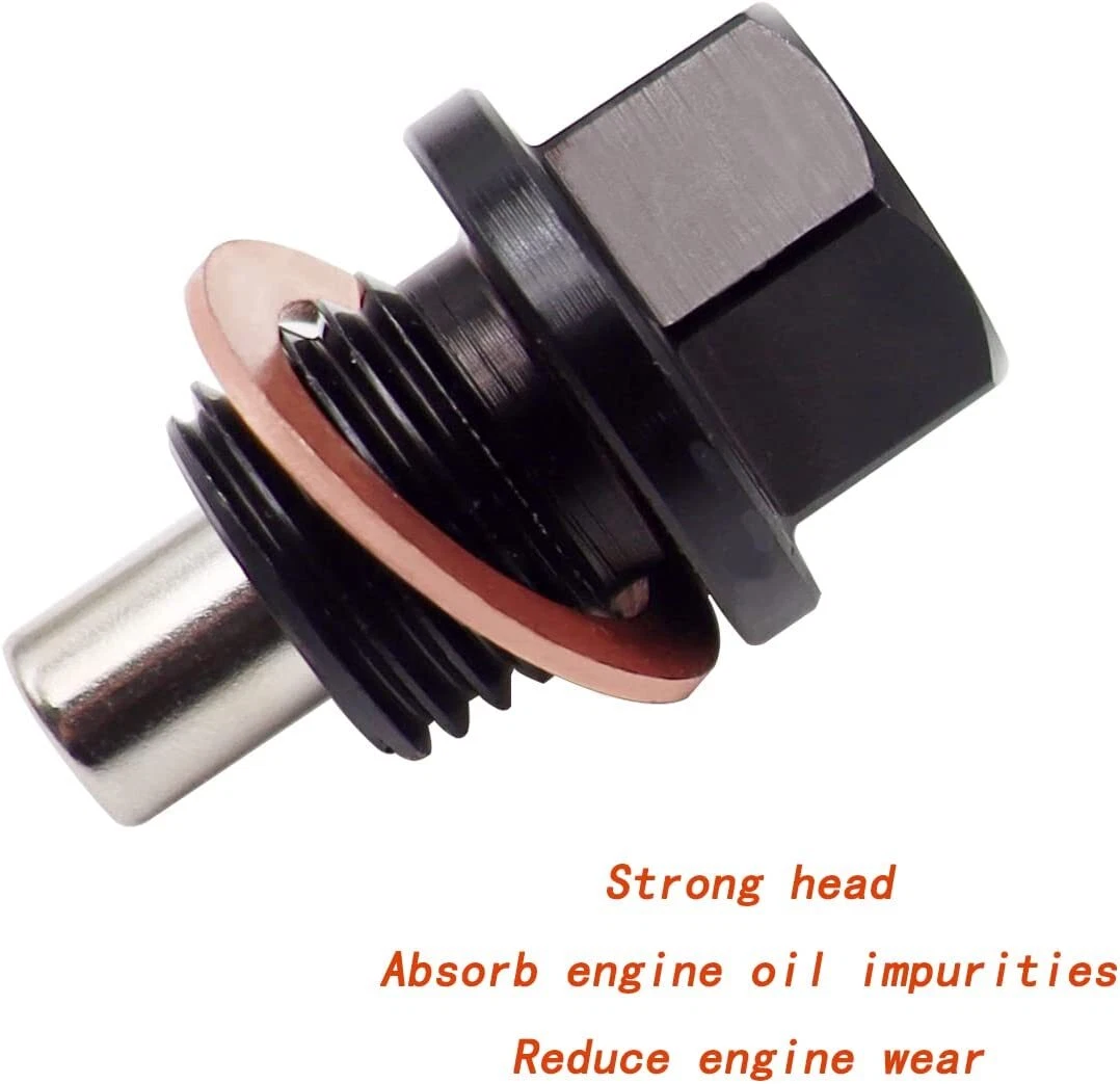 2pcs M14x1.5MM Car Universal Engine Magnetic Oil Drain Plug Screw Nut Bolt Sumps 2PCS M14x1.5 Universal Magnetic Oil Drain Plug | Black Anodized Aluminum | 5000Gauss Magnet | W/Copper Crush Washers Engine Protection Against Metal Debris | Leak-Proof | Fits Ford/GM/Hyundai/Kia & Most Vehicles | 90-Day Warranty High-strength magnetic drain plugs, absorbs oil impurities to extend engine life, easy to install and reuse, universal for cars, motorcycles, ships with M14x1.5 thread 1. Core Specifications Parameter Details Condition 100% Brand New Quantity 2 Pieces Thread Spec M14 x 1.5 Pitch Material High-Strength Anodized Aluminum Alloy + Permanent Neodymium Magnet Color Black Magnetic Force Up to 5000 Gauss Heat Resistance Up to 302°F (stable magnet performance under high temperature) Sealing Accessory Annealed Red Copper Crush Washer (2 pieces included, leak-proof) Warranty 90-Day Warranty + 30-Day Free Return Installation Direct replacement for original drain plug, easy to install/reuse Tolerance 1-3mm deviation due to manual measurement 2. Compatibility Universal Fit (All Vehicles with M14x1.5 Thread) Applicable for cars, motorcycles, ships; most suitable for Ford, GM, Hyundai, Kia models Matching OE Numbers (Partial List) Ford: E0FZ 6730-A, E0FZ 6730-B, D1FZ 6730-B, 8-94152-613-0, 90009-PH1-000, etc. GM: 11569943, 12582347, 94000124, 94500883, etc. Hyundai: 21512-21000, 21512-23000, 21512-2X000, etc. Kia: 0B6S7-10404A, 21512-2X000, KHE03 10404, etc. Tip: Double-check your vehicle’s drain plug thread size (M14x1.5) before purchase 3. Package Contents 2×M14x1.5 Magnetic Oil Drain Plugs (Black Anodized Aluminum) 2×Annealed Red Copper Crush Washers (for leak-proof sealing) 4. Key Features & Advantages 🔹 5000Gauss Strong Magnet, Max Engine Protection Built-in high-strength rare earth neodymium magnet (5000 Gauss) effectively absorbs iron filings, metal debris and impurities in engine oil. Prevents debris from circulating in the oil system, reduces engine wear, and significantly prolongs engine service life. 🔹 Durable High-Quality Build, Long Service Life Made of high-strength anodized aluminum alloy, hard to break, corrosion-resistant and wear-resistant, can be reused for years. Magnet works stably up to 302°F, adapts to high-temperature engine oil environment without losing magnetism. 🔹 Red Copper Washer, 100% Leak-Proof Equipped with annealed red copper crush washer, which deforms slightly when tightened to fill gaps, ensuring tight sealing and preventing oil leakage. Effectively avoids oil waste and engine damage caused by leakage. 🔹 Wide Universal Compatibility Standard M14x1.5 thread fits almost all vehicles with the same spec, including cars, motorcycles, ships. Perfect replacement for original drain plugs, especially suitable for Ford, GM, Hyundai, Kia and most mainstream models. 🔹 Super Easy to Install & Reuse Directly replace your original drain plug, no extra tools or modification needed. When changing engine oil, just clean metal debris off the magnetic end, replace with a new copper washer (or reuse if undamaged) and reinstall—simple and hassle-free. 5. Important Notes Shipping Info: Shipped within 24 hours after cleared payment (excluding weekends & holidays); NOT shipped to Puerto Rico, please confirm your address before ordering. Installation Tip: Replace the copper washer when changing oil to ensure optimal sealing; tighten the plug properly (not over-tightened) to avoid thread damage. Fit Check: Confirm your vehicle’s drain plug thread is M14x1.5 to avoid mismatch. After-Sales Support: Contact us first for any fitment, quality or shipping issues, we will resolve them ASAP. Feedback Reminder: Reach out to us before leaving neutral/negative feedback, we will try our best to provide a satisfactory solution.