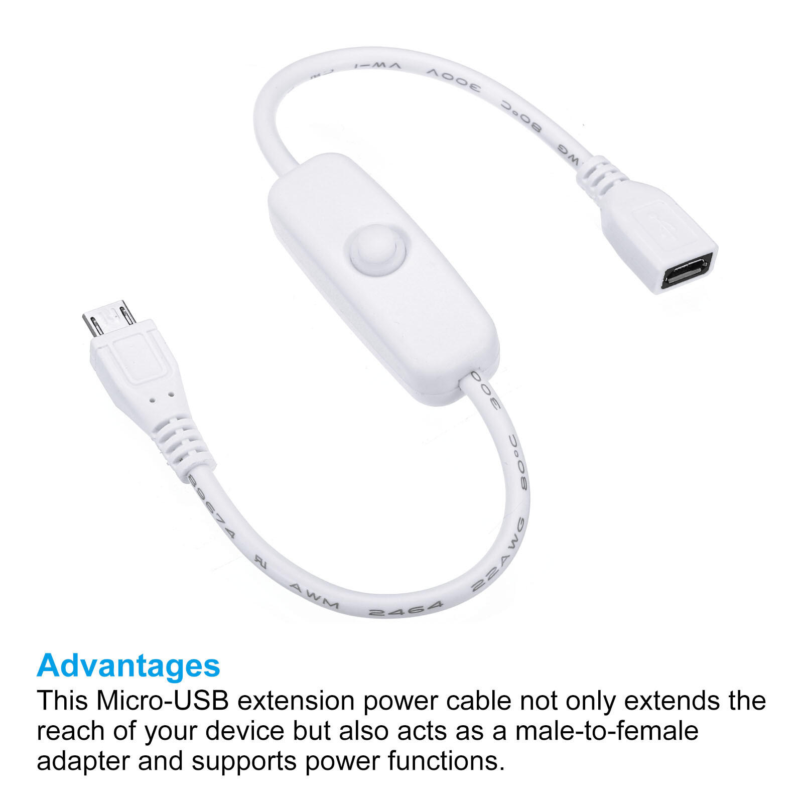 Document This Micro-USB extension cable with ON/Off switch is good to use in a variety of settings, including home, office, and travel. Suitable for small table fans, desk lamps, led strips, and other small electronic devices of the computer.SpecificationColor: WhiteMaterial: Plastic, CopperVoltage: 5V DCCurrent: 2ALength: 28cm / 11"Packing List: 2pcs x Micro-USB extension cable with ON/Off switchAdvantagesThis Micro-USB extension power cable not only extends the reach of your device but also acts as a male-to-female adapter and supports power functions.InstructionThe button switch on this Micro-USB extension cable is designed with a button switch, allowing you to easily control power to your device without having to unplug it.NOTE:To ensure optimal performance, avoid exposing the cable to water or extreme temperatures. USB 2.0 4 Pin DIY Connector Type A Male and Female Plug with a Box 10 Pair USD 13.2 5 Pcs USB 2.0 A Type Female Straight PCB Mounting Jack Socket Connector USD 7.67 DC Connector USB 2.0 Type A Input to 4.0mm x 1.7mm Output Female 4pcs USD 7.88 5 Pcs USB 2.0 Female Type A 4-Terminal DIP 90 Degree Jack Socket Connector USD 6.54 10Pcs 8-Pin Female Jack DIN Connector Adapter Sockets Silver Tone USD 11.21 USB Cable with ON/Off Switch USB Male to Type-C Male Extension Cord 1M Black USD 7.11 2pcs Micro-USB Extension Cable with ON/Off Switch Extension Power Cords Adapter This Micro-USB extension cable with ON/Off switch is good to use in a variety of settings, including home, office, and travel. Suitable for small table fans, desk lamps, led strips, and other small electronic devices of the computer. Specification Color: White Material: Plastic, Copper Voltage: 5V DC Current: 2A Length: 28cm / 11" Packing List: 2pcs x Micro-USB extension cable with ON/Off switch Advantages This Micro-USB extension power cable not only extends the reach of your device but also acts as a male-to-female adapter and supports power functions. Instruction The button switch on this Micro-USB extension cable is designed with a button switch, allowing you to easily control power to your device without having to unplug it. NOTE: To ensure optimal performance, avoid exposing the cable to water or extreme temperatures. Hot Item 10Pcs 8-Pin Female Jack DIN Connector Adapter Sockets Silver Tone USD 11.21 USB Cable with ON/Off Switch, USB Male to Micro USB Male Extension Cord 1M Black USD 7.11 5 Pcs USB 2.0 Female Type A 4-Terminal DIP 90 Degree Jack Socket Connector USD 6.54 USB Cable with ON/Off Switch USB Male to Type-C Male Extension Cord 1M Black USD 7.11 DC Connector USB 2.0 Type A Input to 4.0mm x 1.7mm Output Female 4pcs USD 7.88 Payment We accept eBay payment. Please do not email us to ask for other payment option. We appreciate prompt payment and look forward to your business in the future. Unpaid item will be filed without receiving payment in 7 days from listing ended. Shipping Usually we ship your order out within 24 hours in business day. For shipping and handling charges (S&H) for specific item, please refer to the item listing page for more details. Please make sure your shipping address is correct. We are not responsible for any loss in transit if a wrong address is provided. Return Policy Returns for exchange are permitted and must be initiated by the buyer within 30 days upon receipt. If you would like to return your product(s) for repair / replacement / refund, please kindly contact our customer service representatives via email for an authorized RMA number. Your returned product(s) will not be processed without a completed RMA. About Us We are continually expanding our product selection to better serve your need. We look forward to providing the best sevice to you - our dear customers, so take a look around our store and find the product that you want. You can put your trust in us! If you need any help or have any suggestions, please don't hesititate to contact us anytime , we will reply you within 24 hours and try the best to help you. Description Policy 2pcs Micro-USB Extension Cable with ON/Off Switch Extension Power Cords Adapter This Micro-USB extension cable with ON/Off switch is good to use in a variety of settings, including home, office, and travel. Suitable for small table fans, desk lamps, led strips, and other small electronic devices of the computer. Specification Color: White Material: Plastic, Copper Voltage: 5V DC Current: 2A Length: 28cm / 11" Packing List: 2pcs x Micro-USB extension cable with ON/Off switch Advantages This Micro-USB extension power cable not only extends the reach of your device but also acts as a male-to-female adapter and supports power functions. Instruction The button switch on this Micro-USB extension cable is designed with a button switch, allowing you to easily control power to your device without having to unplug it. NOTE: To ensure optimal performance, avoid exposing the cable to water or extreme temperatures. USB 2.0 4 Pin DIY Connector Type A Male and Female Plug with a Box 10 Pair USD 13.2 5 Pcs USB 2.0 A Type Female Straight PCB Mounting Jack Socket Connector USD 7.67 DC Connector USB 2.0 Type A Input to 4.0mm x 1.7mm Output Female 4pcs USD 7.88 5 Pcs USB 2.0 Female Type A 4-Terminal DIP 90 Degree Jack Socket Connector USD 6.54 10Pcs 8-Pin Female Jack DIN Connector Adapter Sockets Silver Tone USD 11.21 USB Cable with ON/Off Switch USB Male to Type-C Male Extension Cord 1M Black USD 7.11 Hot Item 10Pcs 8-Pin Female Jack DIN Connector Adapter Sockets Silver Tone USD 11.21 USB Cable with ON/Off Switch, USB Male to Micro USB Male Extension Cord 1M Black USD 7.11 5 Pcs USB 2.0 Female Type A 4-Terminal DIP 90 Degree Jack Socket Connector USD 6.54 USB Cable with ON/Off Switch USB Male to Type-C Male Extension Cord 1M Black USD 7.11 DC Connector USB 2.0 Type A Input to 4.0mm x 1.7mm Output Female 4pcs USD 7.88 Payment We accept eBay payment. Please do not email us to ask for other payment option. We appreciate prompt payment and look forward to your b