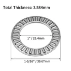 2pcs NTA1625 Thrust Needle Roller Bearings with Washers 1" Bore 1-9/16" OD 5/64" Material Alloy Steel Item Weight 1.06 Ounces Bearing Number TC1625 Bearing Type Roller Bearing [MODLE] - Bearing Model: TC1625 (I.D.=1", O.D.=1-9/16", Thickness=5/64"); Washer Model: TRA1625 [MATERIAL] - Chromium steel rollers for heat tolerance and durability under heavy loads; Steel cage guides and evenly spaced rollers for reduced friction, vibration, and noise [FEATURES] - Needle Roller Thrust Bearings can accommodate axial loads in one direction only [WASHER] - Combined with 2 washers for applications where adjacent machine components cannot serve as raceways [CAPABILITY] - 43.9kN Static Load Capacity, 10.76kN Dynamic Load Capacity, 11000RPM Maximum Rotational Speed