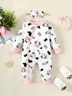 2pcs Newborn Baby Girl Fashion Jumpsuit Cute Cow Long Sleeve Bodysuit+headband Features: 1.Material:Polyester blend. 2.Color:as the pictures. 3.Sleeve Length: Long Sleeve. 4.Season:Autumn 5.Style: Cute and simple style 6.Great for Daily, Party, Photograph.  What You Get: 1 x Romper Shipping Fast Shipping Worldwide Returns We accept returns 30 days from the package received. Payments All payments are accepted via PayPal.