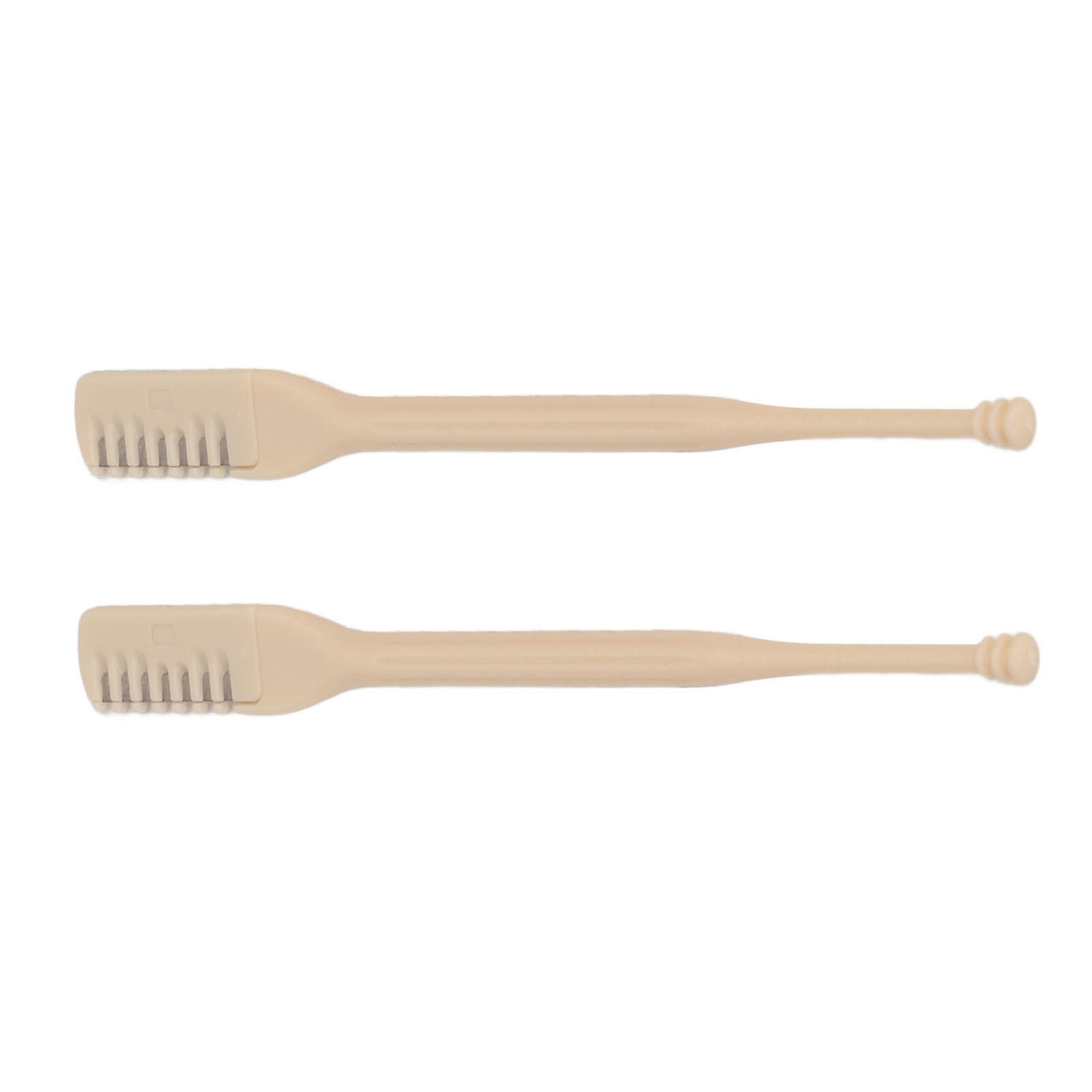 Feature: 1. Multifunction: Perfect for nose hair cutting and trimming, provide you with comfortable nose hair trimming experience. 2. Dual Heads: One head for your nose hair trimming, another for ear cleaning, provides a hygienic grooming experience. 3. Travel Size: With compact design, the hair trimmer can be taken virtually anywhere, whether it is for home use or for business trips, the trimmer will please you. 4. Comfortable To Grip: The ABS grip gives you the best hold, even when wet, for better control when operating your trimmer. 5. Easy To Use: The comb tooth design and incisive edge allows you to expertly trim and shape your nose hair to the desired length and create a clean, confident look. Specification: Item Type: Nose Hair Trimmer Material: ABS Package List: 2 x Nose Hair Trimmer
