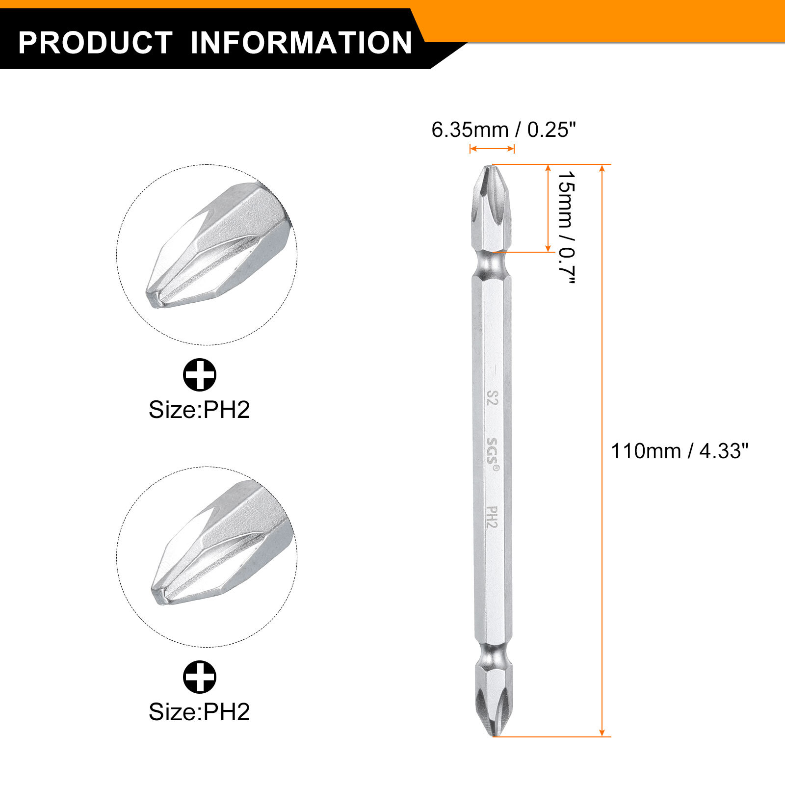 5pcs PH2 Magnetic Double End Phillips Screwdriver Bit 4in 6mm Rod