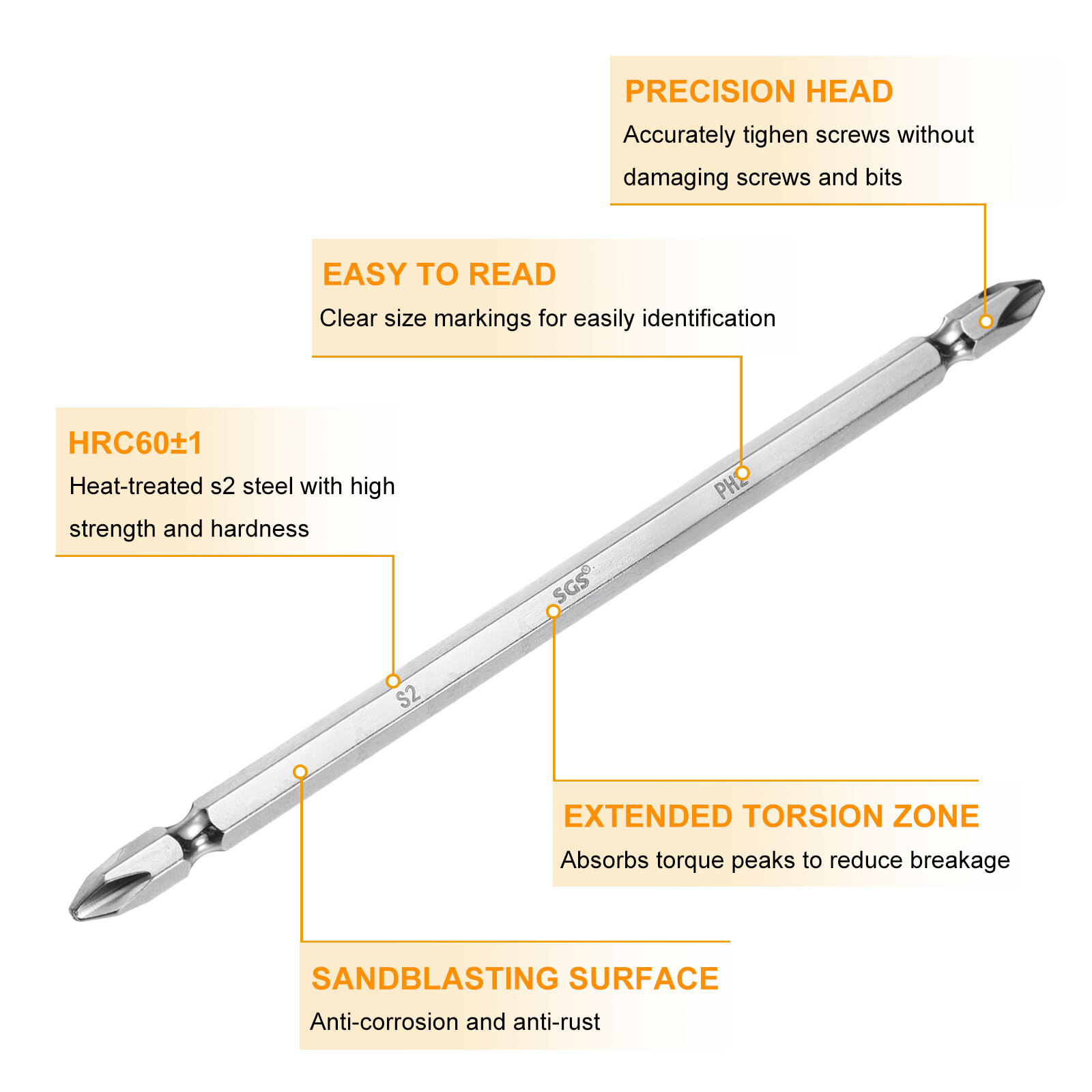 2pcs PH2 Magnetic Double End Phillips Screwdriver Bit 110mm