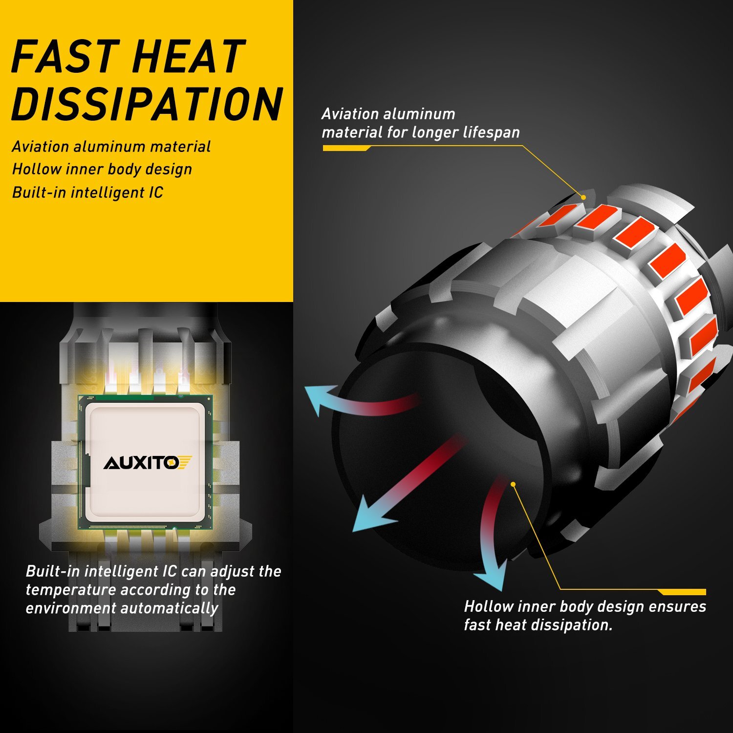 2pcs 3157 Top Quality LED Brake Tail Light Bulbs/Turn Signal. Attention: When using this LED bulbs for turn signal light, it will hyper flash, if you mind this please don't buy this item, or you can add load resistors(not included) to prevent hyper flash or bulb malfunction. 2pcs 3157 3057 4057 4157 LED Brake Stop Tail Flash Light Pure Red Super Bright 2pcs 3157 Top Quality LED Brake Tail Light Bulbs/Turn Signal. Attention: When using this LED bulbs for turn signal light, it will hyper flash, if you mind this please don't buy this item, or you can add load resistors(not included) to prevent hyper flash or bulb malfunction. Why Choose AUXITO LED Bulbs? Excellent Light Distribution: High Power 3030 SMD 23 LED Chips, 360º beautiful, bright light, which makes your vehicle more visible to other drivers, increasing your driving safety. Faster Rise Time: LEDs light up 0.2 seconds faster than incandescent bulbs. This is advantageous for brake lights because it can give the driver behind you additional stopping distance - almost 18 ft. when driving at 60 mph. Incredibly Compact: Plug and Play, Polarity Free. Designed to connect to the same socket and electrical connector, fit perfectly in the same light housing as your original incandescent bulbs. Application: Turn Signal Light bulb rear/front,Back Up Light bulb,Tail Light,Daytime Running Light Bulb,Brake Light Bulb,Center High Mount Stop Light Bulb Note:Flash 4 times in 2 seconds for brake light mode,then keep steady light on. Compatible with these cross reference numbers: 3157 3057 3047 3155 4114 4057 4157 4057 4057LL 4114 4157 4157L…(For Reference Only) Voltage:9-18V DC Current: 0.58A Power: 7W Lumens: 1200LM Color: Red Flash Life span: >30000hrs Working Temp:-40℃-+80℃ Protective Class:IP65 Waterproof If the fitment chart says this item is not compatible with your vehicle, please contact us with your vehicle's Make/Model/Year/Trim which is helpful to check bulb type. Package include: 2pcs LED bulbs. ABOUT US 2pcs 3157 3057 4057 4157 LED Brake Stop Tail Flash Light Pure Red Super Bright 2pcs 3157 Top Quality LED Brake Tail Light Bulbs/Turn Signal. Attention: When using this LED bulbs for turn signal light, it will hyper flash, if you mind this please don't buy this item, or you can add load resistors(not included) to prevent hyper flash or bulb malfunction. Why Choose AUXITO LED Bulbs? Excellent Light Distribution: High Power 3030 SMD 23 LED Chips, 360º beautiful, bright light, which makes your vehicle more visible to other drivers, increasing your driving safety. Faster Rise Time: LEDs light up 0.2 seconds faster than incandescent bulbs. This is advantageous for brake lights because it can give the driver behind you additional stopping distance - almost 18 ft. when driving at 60 mph. Incredibly Compact: Plug and Play, Polarity Free. Designed to connect to the same socket and electrical connector, fit perfectly in the same light housing as your original incandescent bulbs. Application: Turn Signal Light bulb rear/front,Back Up Light bulb,Tail Light,Daytime Running Light Bulb,Brake Light Bulb,Center High Mount Stop Light Bulb Note:Flash 4 times in 2 seconds for brake light mode,then keep steady light on. Compatible with these cross reference numbers: 3157 3057 3047 3155 4114 4057 4157 4057 4057LL 4114 4157 4157L…(For Reference Only) Voltage:9-18V DC Current: 0.58A Power: 7W Lumens: 1200LM Color: Red Flash Life span: >30000hrs Working Temp:-40℃-+80℃ Protective Class:IP65 Waterproof If the fitment chart says this item is not compatible with your vehicle, please contact us with your vehicle's Make/Model/Year/Trim which is helpful to check bulb type. Package include: 2pcs LED bulbs. FAQ Shipping Returns Contact Us Payment Why swith to LED? LEDs not only give your vehicle a clean, modern look but, with proper use, will outlast any halogen bulb and HID bulb! Low energy draw, high lumen output, and instant on/off LED technology out shines stock bulbs in every way. Which bulbs are used in my vehicle? Check Sylvania automotive lamp replacemnt guide , you can select the year, make, and model of your vehicle, then select the application you want to replace or upgrade from stock. What does CAN Bus mean? CAN Bus means Controller Area Network Bus. This system monitors your vehicle and reports operating conditions. CAN Bus systems are commonly found in European vehicles such as BMW, Audi, Mercedes, Volkswagen, Porsche, and in many American vehicles. While most late model American vehicles have CAN Bus systems, it is always good to check with your vehicle dealer to see which system your vehicle has before purchasing electrical products. When do you need Warning Canceller? Some vehicles with cmplex internal computers(such as Audi,BMW,Jaguar,Mercedes,etc.) might report on-dash errors or flickering on the headlights. The warning canceller fixes the dashboard warning and flickering effect. Bulb Out Dashboard Error: On some vehicles, the dashboard will report as if you have a headlight bulb missing or burnt. It does not affect the headlights functioning, but the light on-dash will be on. The warning canceller fixes the issue. Flickering Issue: This happens when your vehicle does not recognize the new headlights installed. When turning the headlights on, the vehicle's computer does not understand the signal back from the headlights hence thinking they are still off. This triggers the headlight flickering effect. The warning canceller solves this issue. LED Advantages: Very low and efficient energy consumption than halogen bulbs & HID Bulbs Compared with HID bulbs, LED bulbs Light up instantly, no warm up period Low voltage protection, high precision constant current driver chip Longer lifespan than HID and halogen bulbs Light can be controlled easily in color and intensity Easy to install a LED headlight conversion kit (1) We will ship your item(s) within 24 hours. (2) We ship this item to US only via USPS first class mail. It usually takes 3-6 working 