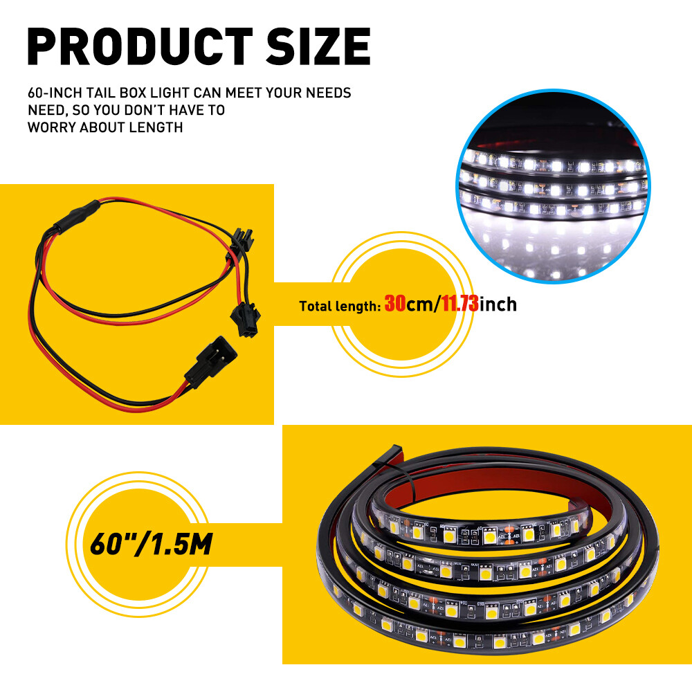 LIGHTING YOUR ROAD - 2pcs White 90-5050-SMD LED lights, best for RV Awning Light, Truck Bed Light, Step Bar LED Lighting, Side Door Led Lamp, Pickup Bed Light Kit, etc MOUNTED ANYWHERE WITH 12V POWER SOURCE - 60" LED strips, rated 12V, ultra long for cargo/pickup/camper/garage/RV Awning lighting or household party decoration KEEPING YOU SAFE IN DRIVING - come with On-Off Switch and Blade Fuse, allow you to freely control the strips and ensure your electricity safety in driving FLEXIBLE & DURABLE LED LIGHTS- IP67 sealed housing, well protects LED strips against rain drops, snow, dirt and sand, super durable and flexible with up to 50,000 hrs lifespan 2x 60" White LED Cargo Bed Light Bar Van Pickup Truck Lighting Strip For ford US LIGHTING YOUR ROAD - 2pcs White 90-5050-SMD LED lights, best for RV Awning Light, Truck Bed Light, Step Bar LED Lighting, Side Door Led Lamp, Pickup Bed Light Kit, etc MOUNTED ANYWHERE WITH 12V POWER SOURCE - 60" LED strips, rated 12V, ultra long for cargo/pickup/camper/garage/RV Awning lighting or household party decoration KEEPING YOU SAFE IN DRIVING - come with On-Off Switch and Blade Fuse, allow you to freely control the strips and ensure your electricity safety in driving FLEXIBLE & DURABLE LED LIGHTS- IP67 sealed housing, well protects LED strips against rain drops, snow, dirt and sand, super durable and flexible with up to 50,000 hrs lifespan CONVENIENT YOUR INSTALLATION - the reliable 3M adhesive can be simply peeled to stick on any smooth surface in seconds, plus, the extra ties help to keep your wires in order Specification Model: 90-5050-SMD LED Type: 5050 SMD Number of lamp beads: 90LED per piece Waterproof class: IP65 Input Voltage: 12V Lighting Color: White LED Strip Length: 60" Running Life: 50,000 hrs Materials: LED Chip+Silicone Package List: Light strip *2 Wiring harness with switch *1 one and two points *1 cable tie *8 screws *15 mounting clip *8 Instruction manual *1 Item Specifics Shape Strip Wattage 12W Housing Color Black Lumens 3000 lm Type Light Strip Features Easy Installation High Brightness Manufacturer Part Number Does Not Apply Item Length 60 in Light Color Cold White To Fit Truck Bed Light Lighting Technology LED Placement on Vehicle Left Rear Right Bulb Color Clear Ballast Included No LED Type 5050 SMD Waterproof IP65 Lifespan 50,000 Hours Fitment Type Direct Replacement Number of Bulbs 90 Bulbs Each Color Temperature 6000K Manufacturer Warranty 3 Year Voltage 12V Brand Unbranded MPN Does Not Apply To Fit Tail Light Payment Variety of payment methods are accepted, such as credit, debit, gift cards, Apply pay, Google Pay, Paypal and Paypal Credit. Shipping 1. All items will be shipped in 24 hours after receiving your payment . 2. We ship this item to US only via USPS first class mail. It usually takes 3-5 working days to deliver. Returns 1. We offer 60 days return policy. 2. Please contact us if you have any questions with the products . 3. Refund will be sent after we got your returned package. 4. All returned items should be in the original packaging with tracking number. Contact Us We work from Monday - Saturday 9:00AM - 6:00PM, but we will reply once we get your message. There will be delay on response if you send message or E-Mail on Sunday. DESCRIPTION PAYMENT SHIPPING RETURN POLICY CONTACT US Shop Category Store Home LED Headlight ◈ 9005 HB3 ◈ 9006 HB4 ◈ 9007 HB5 ◈ H4 9003 HB2 ◈ H7 LED Fog Light ◈ H8 H9 H11 LED Plate Light LED Reverse Light LED Brake Light Rear Bumper Light LED Tail Light Tail Light assemblies Car Parts & Accessories ◈ LED Third Brake Light ◈ Other Parts & Accessories Other New List Item Inside Interior Door Handle Front + Rear Set for 2001-2007 Toyota Sequoia USD 22.99 Control Knob Fan Speed Heater A/C For Jeep Wrangler TJ 99-06 5011218AA Black ABS USD 14.99 For Toyota 4 Runner 1989-1997 Power Signal Antenna AM FM Radio Aerial New I USD 17.99 High Heat Spark Plug Ignition Wires For Set Acura Honda 1997-99 Cl Odyssey 1998 USD 25.99 Exterior Outside Door Handle Rear Right fit 2009 to 2015 Toyota Venza I USD 17.99 Hot Item Rubber Seal Trim Prevent Water Leakage Windshield Sunroof Roof Top Window 10FT USD 12.34 FOR 94-04 MUSTANG PASSENGER or DRIVER SIDE MASTER POWER WINDOW CONTROL SWITCH USD 9.49 Auxito 9005 + H11 Combo LED Headlight 120W 80000LM High/Low Beam 6500K Bulbs Kit USD 46.99 12591720 Camshaft Cam Position Sensor For Chevrolet GMC Cadillac Saab Hummer New USD 12.99 AUXITO Combo 4 9005 + H11 LED Headlight Kit Bulbs High Low Beam White 80000LM USD 35.99 Similar Item Excellent Delivery 2x 60" White LED Cargo Bed Light Bar Van Pickup Truck Lighting Strip For ford US LIGHTING YOUR ROAD - 2pcs White 90-5050-SMD LED lights, best for RV Awning Light, Truck Bed Light, Step Bar LED Lighting, Side Door Led Lamp, Pickup Bed Light Kit, etc MOUNTED ANYWHERE WITH 12V POWER SOURCE - 60" LED strips, rated 12V, ultra long for cargo/pickup/camper/garage/RV Awning lighting or household party decoration KEEPING YOU SAFE IN DRIVING - come with On-Off Switch and Blade Fuse, allow you to freely control the strips and ensure your electricity safety in driving FLEXIBLE & DURABLE LED LIGHTS- IP67 sealed housing, well protects LED strips against rain drops, snow, dirt and sand, super durable and flexible with up to 50,000 hrs lifespan CONVENIENT YOUR INSTALLATION - the reliable 3M adhesive can be simply peeled to stick on any smooth surface in seconds, plus, the extra ties help to keep your wires in order Specification Model: 90-5050-SMD LED Type: 5050 SMD Number of lamp beads: 90LED per piece Waterproof class: IP65 Input Voltage: 12V Lighting Color: White LED Strip Length: 60" Running Life: 50,000 hrs Materials: LED Chip+Silicone Package List: Light strip *2 Wiring harness with switch *1 one and two points *1 cable tie *8 screws *15 mounting clip *8 Instruction manual *1 Item Specifics Shape Strip Wattage 12W Housing Color Black Lumens 3000 lm Type Light Strip Features Easy Installation High Brightness Manufactur