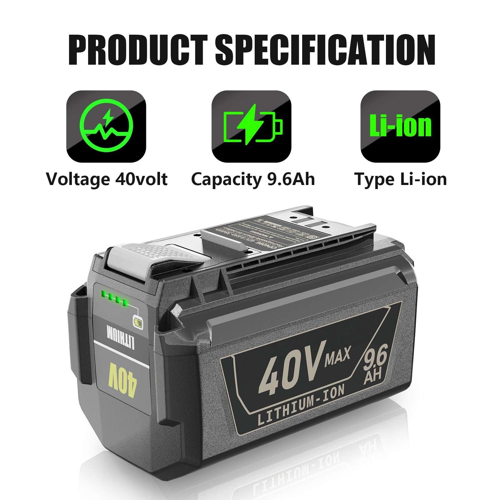 eBay 2x For Ryobi 40 Volt Lithium High Capacity 9.6Ah Battery OP40261 OP4026 OP4015 Message Us Click to Menu Product Description Features 【Battery Details】 Type: Lithium-ion || Voltage: 40V MAX || Capacity: 9600mAh || Wattage: 384Wh || Brand New 9.6Ah High Capacity Replacement for Ryobi 40V Battery 【Widely Compatibility】 This replacement battery works with all original Ryobi 40-Volt tools (string trimmer, lawn mower) and chargers, including RY40200 RY40403 RY40204 RY40530 RY40460 RY40180 RY40250, and OP403A OP401 ZROP401 OP400A RY40440 【9.6Ah Higher Performance】 New 9.6Ah High Capacity Replacement for Ryobi 40V Battery 9600mAh High capacity has more last long time and more powerful, more than triples the run time of the original. Top A Grade Battery cells, optimized performance and overload protection using total system communication between tool, battery and charger Specifications Brand: DSANKE Battery Voltage: 40 V Battery Type: Lithium-ion (Li-Ion) Capacity: 9.6 Ah / 9600mAh Color: Black Condition: Replacement Battery, Brand New Compatible Brand: For Ryobi Warranty: 5 Years Warranty + 60 Days Money Back Shipping: Free shipping,24H Dispatch,1-6 days delivery Certificate: CE PSE ROHS FCC Compatible with Ryobi 40V lithium batteries part number: OP4050A, OP4015, OP4026, OP40201, OP40261, OP4030, OP40301, OP4040, OP40401, OP4050, OP40501, OP40601, OP40602, OP40602VNM Compatible with: for Ryobi 40V lithium cordless power tools RY40180, RY40200, RY40022, RY40201A, RY40202, RY40204, RY40400, RY40402, RY40402A, RY40403, RY40403A, RY40411, RY40511, RY40601A, RY40LM30, RY40190, RY40430, RY40620, RY40460, RY40250, RY40770, RY40850, RY40610A, RY40210B, RY40240, RY40440.RY40180, RY40200, RY40201A, RY40202, RY40204, RY40400, RY40402A, RY40403, RY40411, RY40511, RY40601A, RY40LM30, RY40190, RY40430, RY40620, RY40460, RY40250, RY40770, RY40850, RY40610A, RY40210B, RY40240 Not Fit for the following models : RY40002 String Trimmer and RY40503, RY40408 40V BRUSHLESS 14" CHAINSAW RY40502 RY40502A 40V HP BRUSHLESS 21" SNOW THROWER RY40862VNM 40V HP Brushless Whisper Series 24” Two-Stage Snow Blower RY40870 40V HP BRUSHLESS WHISPER SERIES 22" TWO-STAGE SNOW BLOWER RY408150 40V HP Brushless 21" Whisper Series Snow Blower RY408101 40V 40V HP BRUSHLESS 18" SNOW BLOWER RY40890 Compatible original Charger Code: RYOBI OP400, OP400A, OP401, OP403, OP403A, OP404A, OP406A, ZROP401 Package Included 2x 40V 9.6Ah Lithium-ion Battery For Ryobi 40-Volt Collection Cordless Power Tools 1x Manual Maintenance of Battery: 1.If you don't plan on using the Power Tool Battery for a month or more, store it in a clean, dry, cool place away from heat and metal objects, usually Ni-CD, Ni-MH and Li-ion batteries will self-discharge during storage. Remember to recharge the batteries before use. 2.Do not leave the battery dormant for long periods of time. We recommend using the battery at least once every two to three weeks. 3.Always remove battery pack form your tool when you are assembling parts, making adjustments, cleaning, or when not being used for an extended time. Need Help? Don't Know Your Power Tool or Battery Model? Follow These Quick & Easy Steps... **Remove the battery, usually located on the underside or back of the power tool,and look on the battery for the model number. If no model number is found: Look on the underside of the power tool where the serial number is and locate the model number of the power tool. If you need a part for your model that is not listed above, please email us via ebay message. Our customer service professional may be able to find the product or information that you are looking for or help you refine your search. Delivery Returns Warranty Contact How much is Shipping? Shipping is FREE, United States wide Do you ship internationally? Sorry we do not ship internationally, we only ship to United States. How do you ship items? We use USPS / UPS to process shipments. How long will it take before my order ships? You should expect to receive your order in 7-10 business days. We aim to deliver faster than this, so you may receive your product sooner. Please ensure you provide us with the correct delivery address. Please note that we are not responsible for wrong or undeliverable address.Please ensure someone is available to sign the delivery to avoid delays. Can I pick up my order? Sorry, we do not provide pick up facilities. Is tracking available for my order? Yes, all orders are shipped with a tracking number and can be tracked on the USPS / UPS website.. All items require a signature for delivery. What are your delivery times? Deliveries are made Monday to Friday, 9am - 5pm. Please note that we cannot schedule deliveries with our drivers, as we cannot control freight once it has left our premises. If you are not home, we will be advising that your item will be available for pickup either at your local USPS Post Office, or local USPS depot. Can I return an item? Yes, there are certain situations in which we allow returns, for example : Faulty items, incorrect item sent. Faulty items MUST be reported to us via ebay messages How do I request a return? Returns are only possible when an RMA number has been provided to you. If you have a faulty item: Please message us via eBay Messages us via eBay messages and indicate your order number/eBay item number/eBay User ID as well as the details of the item that you received in error. We will then advise you on how a replacement will be sent. Please note we MUST have provided you an RA/Incident number for you to return an item. If you change your mind: Please choose your item carefully as we do not accept returns just because you changed your mind. How the terms of sales? 1.It is our goal to provide our customer 100% satisfaction. 2. 60 Days Money Back Guarantee and Full Five Years Limited Warranty from the date of original purchase. 3.Product should be returned with original packages and must be returned in like-new condition with all accessories a