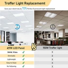 2x2 FT LED Panel Light 0-10V Dimmable 45 Watts 24x24 inch Ceiling Light Fixture Same day send from GA/CA/NY warehouse. More than 5000pcs stock in local warheouse,welcome to inquire best price for bulks. Factory Price!!! Product Features of 2x2 Troffer Light Fixture High Brightness LED Chips 182pcs LED chips , high lumen output of 5800, ensuring bright and clear illumination . CRI 80+ CRI 80 provides a higher level of color accuracy and vibrancy compared to lower CRI ratings. Aluminum Frame Aluminum housing is made of high-quality aluminum material that is durable, lightweight. T-Bar Ceiling Mount The T-bar ceiling mount is designed to securely hold the panel light in place, even if there is an earthquake . Specifications Size: 24 x 24 inches Watts: 45w Kelvin/color: 5000k (Cool white) Cri: 83+ Flood angle: 120 degrees Lifetime: 50,000 hours Dimmable: yes, 0-10V Dimmer Good Quality ---With a color temperature of 5000K and a lumen of 5800 lumen,powerful and efficient light-smoothing optics provide superior light and energy year after year.The panel illuminates immediately and there is no flicker,hum or black dot throughout the life of the luminaire. Low Heat ---These edge-lit LED panel lights run cool,helping to keep the air conditioner low while providing 50% lumens compared to traditional fluorescent tubes. Long Lifespan ---Designed for use at 100-277VAC,with a rugged aluminum frame and white finish,this LED panel light has a design life five times longer than a fluorescent panel. 100%-10% Smooth Dimming Warranty&Service ---We offer a three-year warranty and good after-sales service except intentionally damaged.if you have any questions about our products,please contact us in time. How Much Will You Save? Application ---A simple and convenient flat panel LED ceiling light,can be installed into your drop ceiling,utilized with a surface mounting kit,or hanging from the ceiling with ease. Ideal for homes, hospitals, schools,shops,supermarket,office,or any place requiring a highly efficient LED light panel.