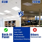 2x2 LED Flat Panel Light 4 Pack, 45W 5800LM 2x2 FT LED Light Drop Ceiling, 5000K Same day send from GA warehouse. More than 5000pcs stock in local warheouse,welcome to inquire best price for bulks. Factory Price!!! Specification Number of LEDs: 182 Wattage: 45 watts Luminous Flux: 5800 LM Color Temperature: 5000K Voltage: 100-227V AC Size: 23.75"L x23.75"Wx1.25"H Sensing Distance: 16 to 32ft Sensing Angle: 120° Package Quantity: 8 Lifetime: 50000 hours Product Features of 2x2 Troffer Light Fixture High Brightness LED Chips 182pcs LED chips , high lumen output of 5800, ensuring bright and clear illumination . High-brightness LED panel that provides an even, bright, soft, natural light. NO Flicker and Eye Protection. CRI 80+ CRI 80 provides a higher level of color accuracy and vibrancy compared to lower CRI ratings. This means that colors appear more vivid and true to life , making it ideal for applications where color accuracy is critical. Aluminum Frame Aluminum housing is made of high-quality aluminum material that is durable, lightweight. Additionally, it helps to dissipate heat generated by the panel light. It also protects the internal components of the panel light from dust, moisture, mosquito . T-Bar Ceiling Mount The T-bar ceiling mount is designed to securely hold the panel light in place, even if there is an earthquake . T-bar ceiling mounts are made of fire-resistant materials, which can help prevent the spread of fire. Energy Saving --This low-profile panel combines powerful LEDs with highly efficient light-smoothing optics to deliver superior quality of light and energy savings year after year. Each unit is a complete luminaire replacement for a 2x2ft fluorescent troffer fixture. High Quality --The panels come on instantly with no flicker, buzzing, or dark spots over the life of the fixture. These edge lit LED panel lights run cool, helping to keep your air conditioning bill low while providing 50% more lumens than a 4' two-tube fixture light. 100%-10% Smooth Dimming Easy Installation --LED panels are easy to install as drop ceiling lights or suspended as free-hanging fixtures. They are maintenance-free during their 50,000 hours average operating life. Installation Suggestions for Reference How Much Will You Save? Perfect replacement for traditional 150W-200W fluorescent lamps High-efficiency LED chips in 5000K color temperature, amazing brightness up to 5800 lumens. Reduce your electronic bill by up to 85%. If you have a space of 400 square feet, for example, you would need around 2-3 2x2 panel lights to provide adequate illumination. To determine the number of lights required for your space, you will need to calculate the total square footage of the area to be illuminated and then divide by the recommended coverage area of a single 2x2 panel light (100-150 square feet). Note: After purchasing the lamps, buyers can refer to the installation procedures 1 to 4 to install the lamps, but pay attention to safety. Step 1 Remove the integrated ceiling aluminum gusset plate. Step 2 Connect the power cord. Step 3 Place the panel lamp on the ceiling clamp. Step 4 After the panel lamp is placed stably, it can be powered on for use. Multiple scenarios LED panel lights are suitable for multiple scenes/spaces, such as kitchen/bathroom/living room/dining room/balcony/office, etc. Wide Application --The LED panel light operates within a wide 120-277 VAC range, has a sturdy aluminum alloy frame with a white finish, and is designed to last 5 times longer than fluorescent panels. Excellent for use in offices,Schools,health care facilities, kitchens, and workshops. The 2x2ft LED flat panel lights make them ideal for retail stores and showrooms.
