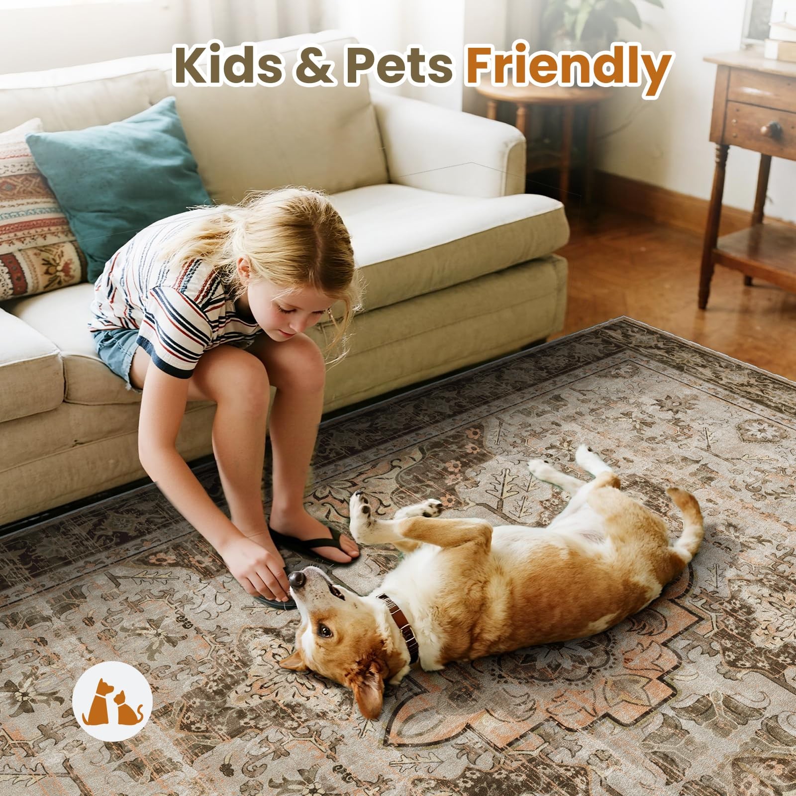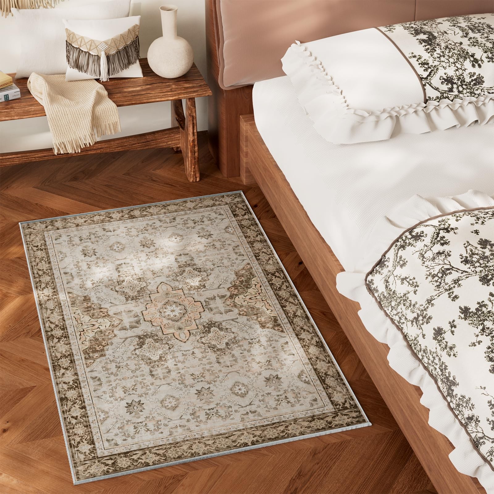 Elevate your home decor with this exquisite boho rug. Crafted with a blend of beige and brown tones, it showcases intricate patterns and a striking central medallion, inspired by traditional artistry. The ornate border adds a touch of timeless elegance, while the high - quality material ensures durability and a soft, comfortable underfoot feel. Perfect for living rooms, dining areas, or bedrooms, this rug effortlessly infuses your space with classic charm and sophistication, making it a standout addition to any interior. Exquisite Boho Print Rug:This 2x3 area rug features vibrant fade-resistant colors and mixed patterns that draw inspiration from different cultures—including geometric motifs, floral designs, mandalas, and kilim stripes, complementing vintage, boho, farmhouse, and modern decor. Luxurious Soft Materials:Crafted from a premium blend of ultra-soft polyester and Faux Wool Fibers, this boho area rug offers a cloud-like underfoot feel. The plush surface is gentle against bare feet, providing exceptional comfort when you walk, sit, or lie on it. The high-quality materials also ensure the carpet remains soft and cozy even after long-term use, enhancing the warmth of your living environment. Easy Care: Maintaining the beauty of your boho carpet is easy. For daily care,regular vacuuming removes dust and debris effortlessly. Small stains can be quickly spot-cleaned with a mild detergent and a damp cloth. The fade-resistant printing technology ensures the colors stay bright and vivid even after multiple cleanings, keeping your carpet looking fresh for years. Anti-Slip and Safe:Equipped with a non-slip upgraded TPE rubber backing, this rug is designed to stay firmly in place on various floor surfaces, including hardwood, tile, and laminate. This feature not only prevents accidents like slips and falls but also makes it suitable for high-traffic areas in your home, such as the living room, hallway, bedrooms, dining room, dorm, playrooms or kitchen. It provides a safe environment for children and pets to move around freely. Tips for Rug Crease Removal:Washable rugs often have shipping/packaging creases upon arrival—no need to worry! To smooth them: Lay the rug flat, gently rub out visible creases by hand. Then walk on it regularly; weight and movement relax fibers. Creases usually fade naturally in a few days as fibers settle, keeping the rug smooth, unblemished, and usable.
