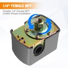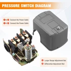 40-60 PSI Adjustable Water Pressure Switch for Well Pump 110V 230V Well Pump Pressure Control Switch Adjustable Double Spring 1/4" Female NPT Water Pump Pressure Switch, 2 Pack Bullet Point ★【Durable& Sturdy】 Made of high quality Plastic shell & Cast Iron & Silver contactor , superior conductivity and longevity. Thermoplastic finished-ensures longer service life and usability; durable and reliable to use ★【Specification】1/4" NPSF internal fluid connection;Pressure setting:40-60psi;Cut-In Pressure 20 Psi; Cut-Off Pressure 120 Psi ;IP Grade: IP20;Frequency: 50/60Hz;Horsepower Rating (1-Phase) 2HP-115VAC – 3HP-230VAC ★【Perfect Tool for Well Pumps 】Diaphragm actuated;This pressure control switch automatically turns on/off the water pump according to the change of pipeline pressure to achieve unmanned control.With this switch, you can adjust the pressure of the pump,and you can set the adaptive pressure according to the work needs. ★【Easy to Operate】Easy to install and to adjust;2-spring design of water pump pressure switch allows for adjustment of cut-in and cut-out pressure settings; ★【Widely Used】Suitable for most of water pumps, such as self-priming water pump, injection water pump, garden water pump. Pictures Description Features: This is a water pump pressure control switch for perfect pressure control. The water pump pressure is adjustable through this switch and you can set the adaptable pressure as you the work needs. It is made of high quality materials for strong strength and long durability. Easy to install, can be used for a long time. Suitable for most of water pumps, such as self-priming water pump, injection water pump, garden water pump, etc. Specifications Material: Plastic shell & Cast Iron & Silver contactor Color: As Picture Shown Rated Voltage: 110V/230V Max. Current: 12A/6A Pressure Range: 0.8-5.0bar Pressure Set: 0.8-1.6bar Connector Thread: ZG1/4" Protective Grade: IP20 Working Temperature: 0-55℃ Package Weight: Approx. 346g Package Included: 2 * Water Pump Pressure Control Switch (Silver Contact)