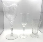 Each of these glasses tells a story of elegance and timeless tradition. Delicate floral etchings dance gracefully on clear glass, perfect for creating memorable moments. • Vintage-style floral etching • Sturdy glass construction • Clear glass for versatile use Came from my Great Grandmother's estate. Top to bottom = 8 inches (tallest), 6 inches (medium), 4 inches (shortest) Note: I do have more of these if needed. Condition: Pre-Owned Good Note: patterns do not match. "Power Selling Mom Consignment"