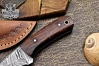 Custom Hand Made DAMASCUS STEEL HUNTING KNIFE WITH ROSE WOOD HANDLE We offer a shipping discount for More then one purchased . And discount will be apply on combine invoice, Discount will not apply on separate payment. ITEM DETAILS OVER ALL LENGTH 3.0 inches long (Approx) HANDLE LENGTH 1.5 inches long (Approx) BLADE LENGTH 1.5 inches long (Approx) BLADE HARDNESS 58-60 HRC Which Holds The Sharp Edge For Long Time. HANDLE ROSE WOOD COVER LEATHER SHEATH This Awesome custom made KNIFE has a nice hand forged with the combination of 4340 & 1080 steel. HOW OUR DAMASCUS IS MADE: All our Damascus is real and not just an acid etch. Damascus is a mixture of 1080HC and 4340 nickel carbon. You heat them up together and then fold the bar over and over to get the desired layers, ours are 396 layers. Then you burn the blade in acid, and it turns the nickel satin color and the high carbon turns blackish gray. This is how the layers are exposed to show the layers of the new steel created coined "Damascus". All Damascus is acid etched to show the layers. If you high polish the metal it will be shinny satin like all steels. Only after you burn the sides of the blade with acid do you see the layers of the two steels. Makes sense? After we make our knives we high polish the handles and put an edge on the blade. The high polishing buffs off the acid burned layer of the handle, and the blade edge is sharpened and the acid burned edge becomes satin. You can re-burn the tang of the blade near the handles and the edge of the blade and it will show the layers once more. All our knives are hand made, durable and unique ***** YOU WILL RECEIVED THE SAME KNIFE Qality Standards Our Damascus blades are made from high quality non-stainless steels which rival or exceed any Damascus blade made from the 10 series with 4340. Our Damascus combination has taken years to perfect and has been tested under a variety of application which will offer professional performance in categories of toughness, strength (lateral stress) and edge honing and holding ability. In a 5 spot Rockwell test our blades will average near or close to 58 which offers a perfect balances between its toughness and strength.Our blades due to carbon content need to be regularly treated with wax and/or 3 in 1 oil to maintain its superior quality. Questions if you have any question feel free to send us message we aim to answer all questions within 24 hours Feedback If you are not satisfied with our service please contact us before leaving any negative or natural feedback. We will resolve all issues as quickly as possible. Disclaimer We are not responsible for any injuries associated with the use of our tools. Our products are intended for legal use only by responsible buyers. Therefore, we will not sell our products to anyone under the age of 18. Before bidding please check your country laws as some countries Custom don't allow this. If your purchase is held by Custom Authorities in your country/State we will not be responsible for that and no refund will be issued Shipping We offer a 20% shipping discount for More then one purchased . And discount will be apply on combine invoice, Discount will not apply on separate payment We ship within 24 hours after receiving complete payment but this can be delayed due to week ends or Governments and Religious Festivals . . This is beyond our control and we apologize for this inconvenience. Precautions Our Tools are very sharp so open and use them very carefully We are not responsible for any injuries associated with the use of our tools Tips to Care knife 1. NEVER STORE YOUR KNIFE FOR LONG TIME IN LEATHER SHEATH. 2. LEATHER CAN ABSORB WATER, WHICH WILL RUST THE KNIFE. 3. ALWAYS CLEAN THE BLADE AFTER USING WITH OIL OR WAX