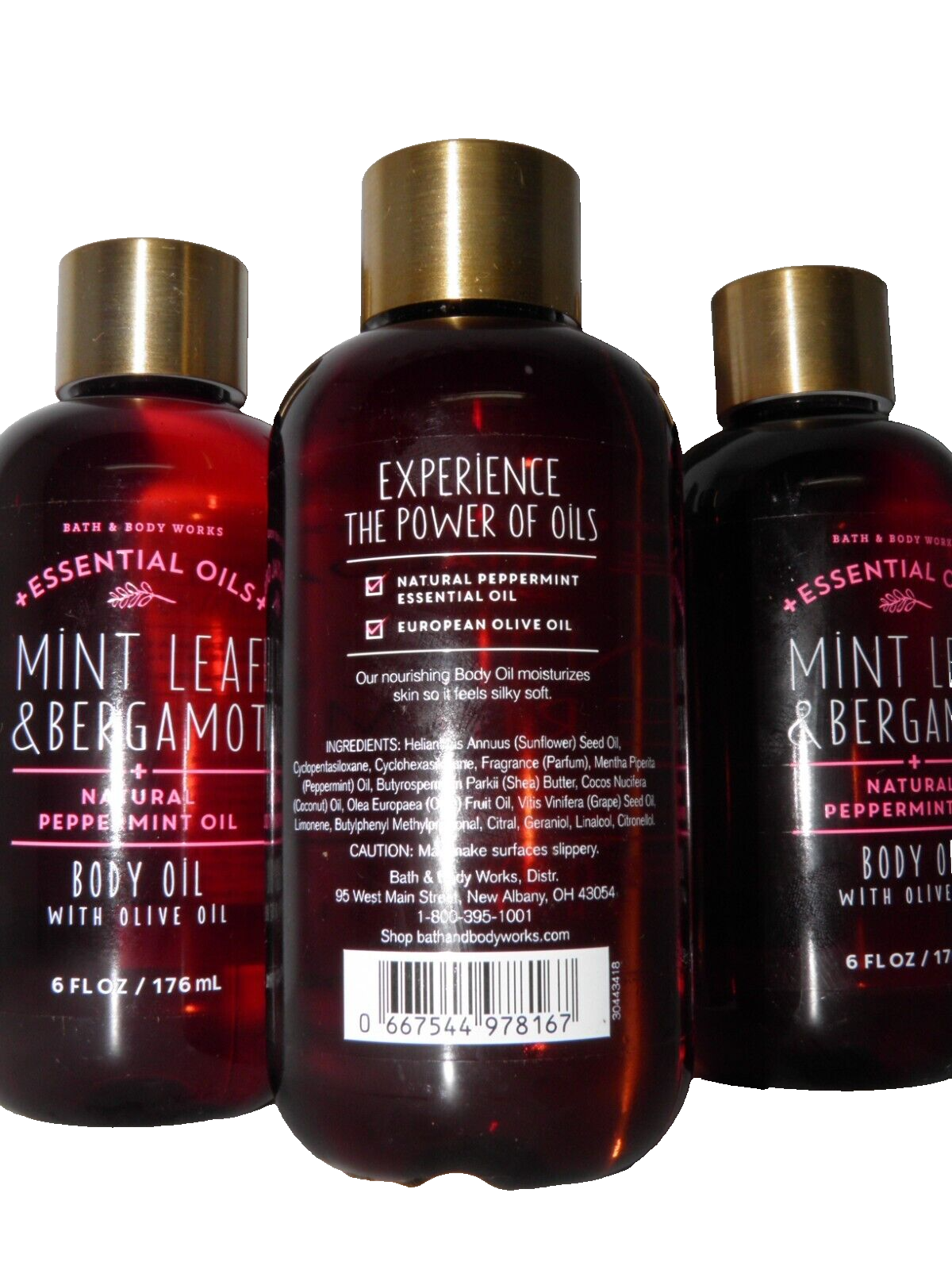 3 Bath & Body Works Mint Leaf & Bergamot + Natural Peppermint Oil Body Oil 6 oz Mailing Address - We cannot change the shipping address after purchase. This policy is in place for the protection of the buyer and seller. Before making a purchase, please ensure that your address is correct. We cannot change the address after purchase and will otherwise cancel the sale. Handling Time - Our handling time is set to THREE BUSINESS DAYS. We ship packages Monday - Friday, except on holidays . This listing is NOT sponsored by, affiliated with, or representative of the mentioned brand(s), trade name(s), or trademark(s) and does not claim any ownership of such. All trademarks or brands mentioned in this listing are registered trademarks of their original owners who reserve all their rights and ownership. The use or mention of any trade name, product name, or trademark is necessary for identification and is for reference purposes only