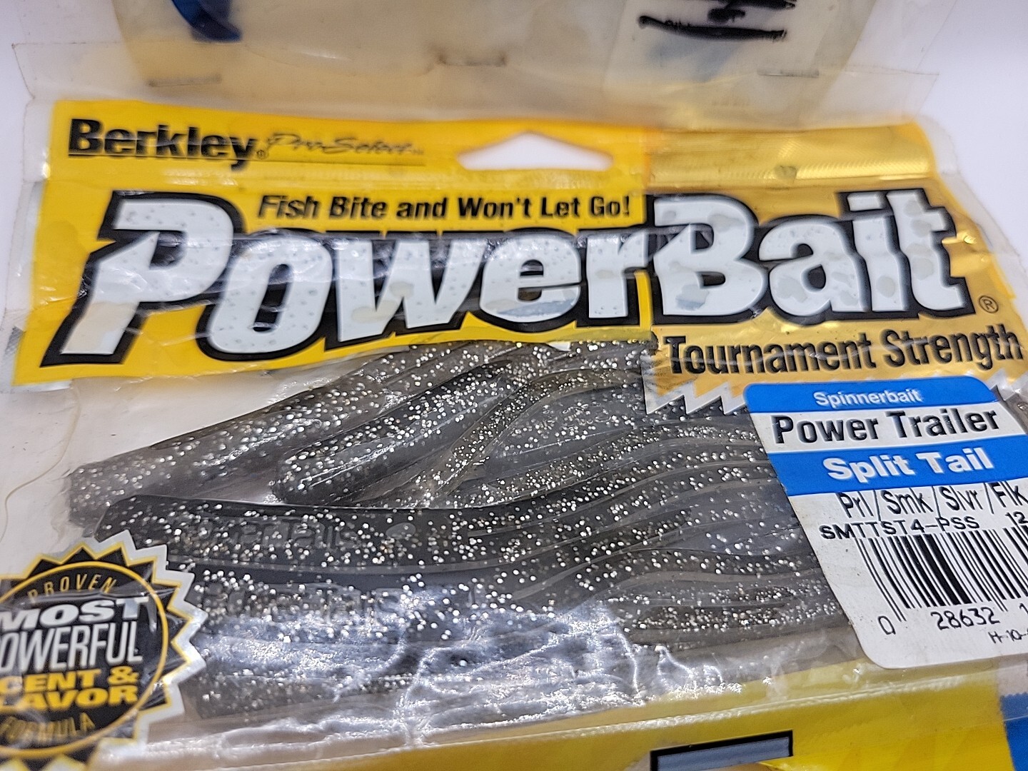 lot of 3 packages of Berkley Power Bait 1pk Power Trailer split tail silver flake 1 package green pumpkin 5" sinkworm 1 package blue power frogs