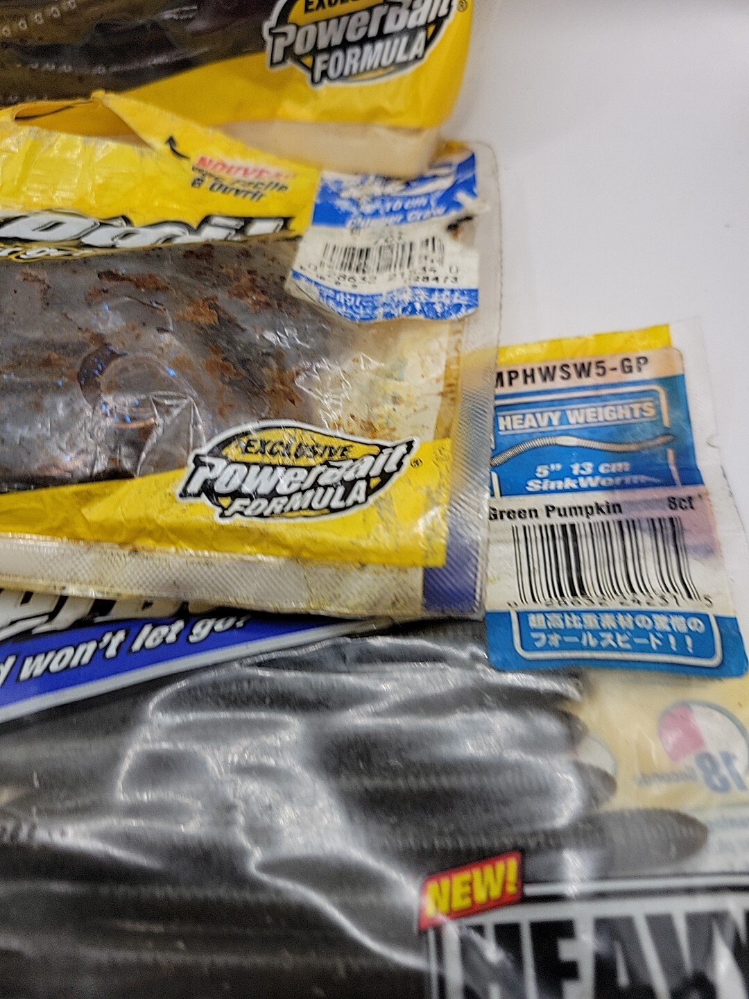 lot of 3 packages of Berkley Power Bait 1pk Powerbait Berkley Original scent Purple Bass 7" power worms 1pk 5" silkworms Green pumpkin 4" chiggers craw Crawfish