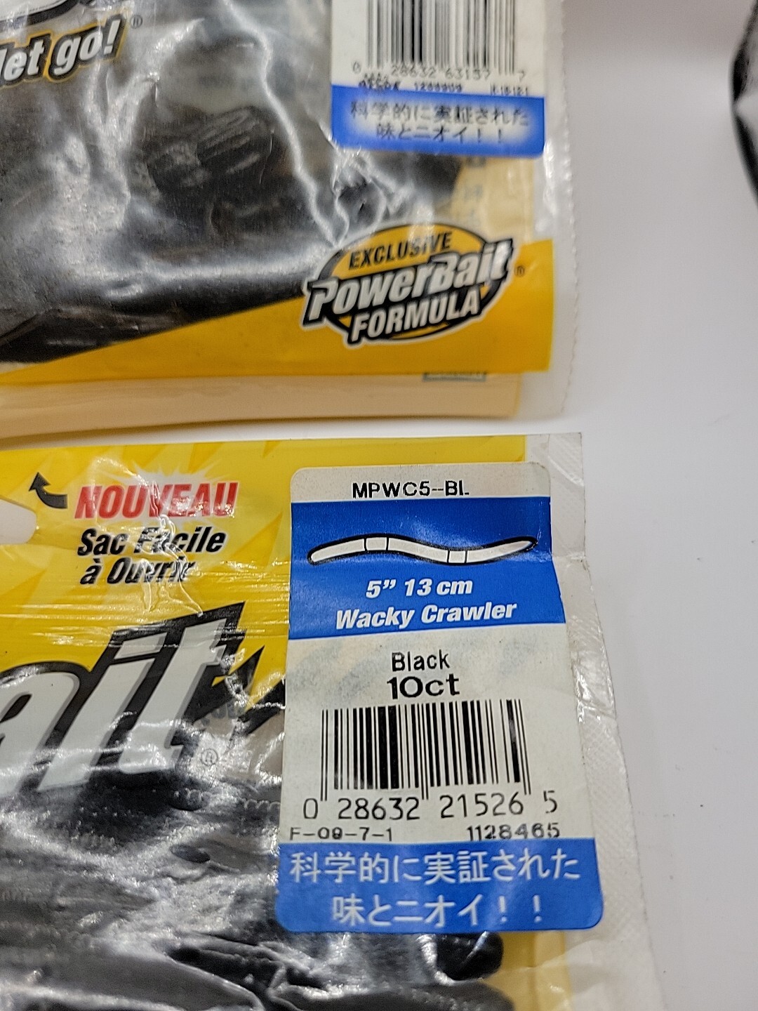 lot of 3 packages of Berkley Power Bait 1pk Powerbait Berkley Original scent 5" power jerk Shad rainbow 1pk blue flew 4" Finesse power Worm 1pk 4" Finesse power worm
