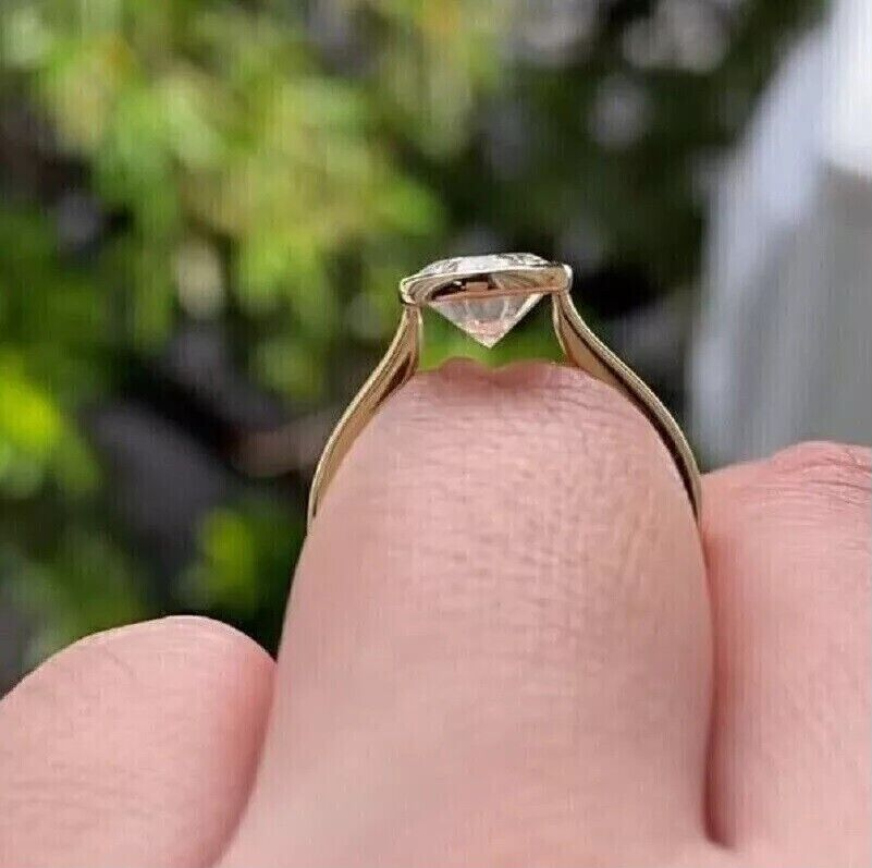 3 CTW Oval Cut VVS1 Moissanite Solitaire Engagement Ring 14k Yellow Gold Plated ELEGANT LOOK! GREAT SHINE! Stone Color - White Shape of Stone- Oval Approx. Weight of Stone- 3 Carat Cut - Excellent Metal - Stamped Solid 925 Sterling Silver Size of Ring – US 7 is default size - (Can be resized in all size and charges above US 8 may apply additional $ 10.00 or default will be shipped) This ring is handcrafted with utmost care. Would make an ideal gift for someone special. The stone has excellent cut and luster. Comes in attractive packaging. CERTIFICATE OF AUTHENTICITY PROVIDED Shipping : Shipping is by UPS/SPEEDPOST/FEDEX or similar shipping agencies to reach you in 9-12 business days after processing the order. Tracking is provided. Please note: Jewelry items can take up to 10-12 business days to process to take care of ring sizing if any, polishing, finishing, packing and handling, certification, documentation etc. Shipping Charges include eBay fees on Shipping, packaging, certification costs, manpower costs, overheads, taxes etc. in addition to actual courier/postal expenses which have increased substantially as a result of pandemic & global economic conditions. We do not artificially increase the price of the products to include shipping charges but only charge what shipping actually costs us. Combined Shipping: Combined shipping discount is available up to 5 (Five)items in an order to be purchased within 5 days. You can continue to buy- Any additional items above 5 in quantity will be considered a new order. This is to avoid pilferage en-route as well as to ensure that you are happy with the merchandise. Once you have received their items you may buy additional items again. This limit may be revised for repeat and regular customers. Payment: Buyers are requested to pay within 3 (Three) days of purchases. eBay will automatically open unpaid item cases in case payment is not received within this period. The item will also be available for purchase to other buyers till such time that the payment is received. Customs and Taxes: Any customs duties, charges and local taxes are subject to local laws and vary from country to country and hence the payment of any eventual custom duties, charges, levies and taxes etc will be at the buyer's expense. We do not have any control on the same. Returns & Refunds: You can return the item within 14 days of receiving the parcel. - Please return in original packing. Buyers are required to check and ensure that the item/s are in good condition and as per item listing on eBay as no claims for returns and refunds will be entertained thereafter. The returned item should be unused and in original and undamaged condition. Buyer will be required to ensure that the item is sent by trackable shipper. Shipping charges are non-refundable. Refunds are made by PayPal and may take up to 5-7days after receiving back the product/s. Disputes: We aim to settle all disputes amicably. Please do not open any dispute on eBay for dis-satisfaction or for non-receipt or to return an item. We are available through ebay messages system and most messages are replied in a few hours. Personalized satisfaction is of utmost importance to us. Feedback: We always provide excellent feedback to our buyers and expect the same in return with 5-star ratings. In case of any dissatisfaction or any other reason please do contact us before leaving any neutral or negative feedback - we will strive our best to resolve all issues to your satisfaction. Metal: Silver is 925 Sterling Silver with Nickel Free Rhodium Plating. Please refrain from buying if you have allergic reaction to metals. We will not be responsible for any health problems in this regard. Legal Disclaimer: Refund or any claim liability for the buyer is only limited to the value of the item purchased. No additional claims will be entertained for any other reason whatsoever. Please note that since various labs may have different testing methods and the interpretation of all our Diamonds and Stones may differ from one lab to another as well as from one Gemologist, appraiser and Jeweler to another, we will be unable to accept another Lab Certificate or the judgement of any other third party including any Gemologist, appraiser, Lab, Jeweler etc. By consenting to buy our items it is understood that you have read, understood and agree to the terms and conditions as well as the FAQ for the Diamonds and Jewelry being sold buys. What Guarantee do you offer? We offer full100% Money Back Guaranteed in case of any manufacturing defect. Please also refer to the Refund Policy as mentioned our item listing.