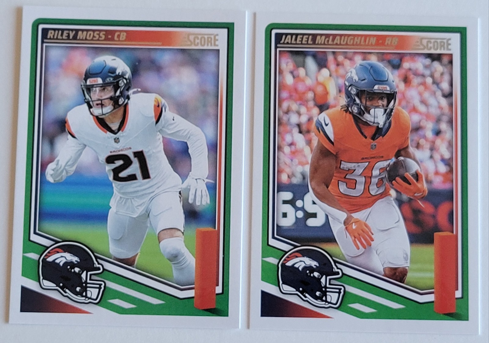 The cards are in very good to excellent condition. Look at photos for reference. The 3 cards for sale in this listing include: 2025 Panini Score Card #251 Riley Moss *2024 Panini Prestige Card #344 Jonah Elliss Rookie Card* 2025 Panini Score Card #54 Jaleel McLaughlin Will ship nonmachinable using EBay standard envelope for cheaper shipping costs and secured shipping. Thanks for viewing this listing and feel free to check out more of my listings. Happy collecting!