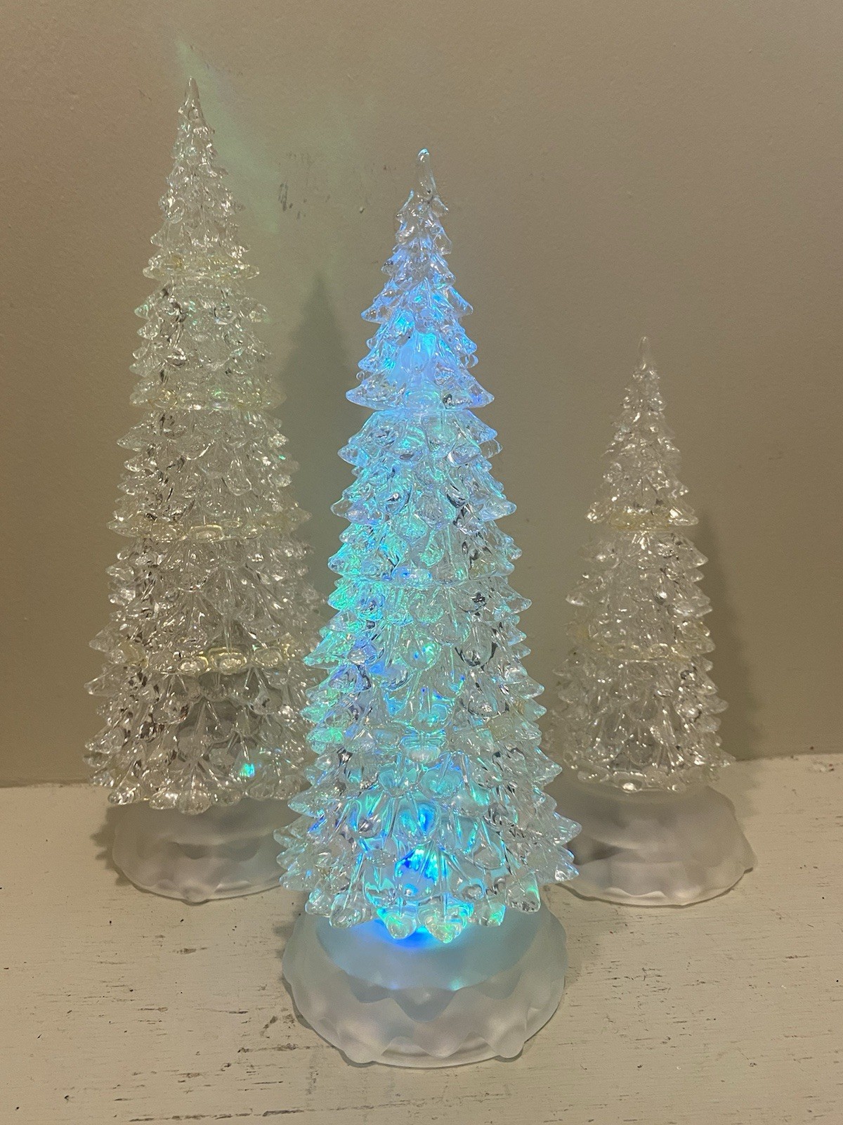 This set of 3 color-changing LED lighted Christmas trees is perfect for adding a festive touch to your holiday decor. Each tree is 1 foot tall and made of plastic, ensuring a long-lasting and easy-to-maintain display. The multi-light color-changing feature adds a fun and dynamic element to your indoor space, making it a unique and eye-catching addition to your Christmas tree collection. These artificial trees are ideal for those who appreciate the beauty of Christmas trees without the maintenance of fresh ones, and they are sure to bring joy to your home during the holiday season.