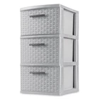 Organize visible storage areas with Sterilite’s Weave collection. These Weave Storage items combine style and function; the trendy look of weave with the convenience, durability and value of plastic to provide a variety of décor solutions for your living spaces. The 3 Drawer Weave Tower is ideal for "out in the open" lightweight storage needs. Three opaque drawers keep clutter controlled and concealed while providing access to frequently used items, where they are most often used. The easy pull handles allow drawers to open and close effortlessly, with a drawer stop to prevent drawers from being removed accidentally. When storing items away, be mindful of the weight in each drawer and don't overload. The overall assembled dimensions of this item are 15" D x 12 5/8" W x 24" H. Sterilite Adult Plastic 3 Drawer Weave Tower Cement: Outside Dimensions: 15" x 12 5/8" x 24" Three opaque drawers keep contents concealed where they most often used Single unit option Opaque woven pattern to add a fashion touch to your storage - Cement Interior Dimensions at bottom of drawer: 12 1/2" x 10" x 7" Stylish weave pattern complements all décor in easy to clean, durable plastic Versatile decorative storage solution is ideal for use throughout the home Opaque drawers keep contents concealed and clutter controlled Keep frequently used lightweight items contained and organized where they are most often used BPA-free and phthalate-free