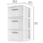 Wet Dog Food Chopped Ground Dinner Beef Canned Adult Nutrition 4 Pack 22oz Cans 15.08 USD Free shipping Professional Handheld Seed Spreader Bag Seeder 25lbs Capacity W/ Waterproof Bag 52.17 USD Free shipping 4-Person Clip & Camping Dome Tent Outdoor Portable Hiking Lightweight HOT 49.0 USD Free shipping Durable 5.70-8 8-Ply Trailer Tire Non-Radial Highway Trailer Replacement Tire US 48.43 USD Free shipping Large Jerky Gun W/ Stainless Steel Trigger 3 Attachments & 5 Spice Packets New 18.75 USD Free shipping Acrylic Lying Deer Christmas Tabletop Decor Holiday Centerpiece Elegant Design 24.78 USD Free shipping Sonic Bounce Ball High Bounce Outdoor Game Toy Kids Teens Party Favors New 11.74 USD Free shipping Ceramic Santa Boots Holiday Decoration Whimsical Charm Tabletop Display New 20.82 USD Free shipping Trailer Tail Light Guard Box LED Brake Turn Light Waterproof Heavy Duty Steel US 49.49 USD Free shipping Gingerbread Cake Cookie Mix Kosher Baking Mix Quick Easy Family Treats New 19.6 USD Free shipping 9-Shelf Adjustable Media Storage Rack DVD CD Blu-ray Game Cases Organizer New 49.06 USD Free shipping Quick Rolled Oats 10lb Pail 90 Servings Shelf Stable Emergency Survival Food New 25.73 USD Free shipping Improve your storage options with the 3-Drawer Weave Tower. Designed with three opaque drawers, it helps control clutter while providing access to frequently used items. This drawer tower also features easy pull handles and a drawer stop to prevent drawers from being accidentally removed. The stylish weave pattern of the drawer tower provides a furniture-like look in easy-to-clean, durable plastic. Try placing in your den, family room, dorm room, office, bedroom and more. You can even use it as a makeshift nightstand. This 3 Drawer Weave Tower comes in white, allowing it to blend in with different types of decor. 3 Drawer Weave Tower, White: Overall assembled size: 15" x 12 5/8" x 24" Stylish weave pattern provides a furniture-like look in easy to clean, durable plastic Versatile decorative storage solution is ideal for use throughout the home Opaque drawers keep contents concealed and clutter controlled Keep frequently used items contained and organized where they are most often used Sterlite plastic 3 drawer tower has easy pull handles that allow drawers to fully open and close easily Drawer stops prevent drawers from being accidentally removed Weight: 16 lbs Comes in case of 2 or single You may also like Kitchen Trash Can Touch Top 13 Gallon Garbage Bin Space Saving Odor Control New 23.66 USD Free shipping Elegant Vintage Floral Ceramic Tea Cup & Saucer Set 6 Pieces Perfect Gift New 40.27 USD Free shipping Red Tinsel Christmas Garland Polka Dot Indoor Decor Flame Retardant 50ft New 23.73 USD Free shipping 7pc Comforter Set Soft Microfiber Bedding Includes Sheets Pillowcases Shams New 85.78 USD Free shipping Floral Quilt Set Full Queen Luxury Bedding W/ Decorative Pillows & Shams New 110.48 USD Free shipping Murder Mystery Party Game Pasta Passion Pistols Family Fun 8 Players 16 New 19.97 USD Free shipping Automatic Gravity Pet Feeder Cats Dogs Easy Refill Transparent Container New 24.84 USD Free shipping Lightweight Unscented Cat Litter 21 Day Odor Control Clumping 99.9 Dust Free New 31.21 USD Free shipping Faux Rabbit Fur Comforter Set Double-Sided Tie-Dye Bubble Design Plush Bedding 91.5 USD Free shipping Aluminum Half Sheet W/ Lid Non-Stick Bakeware Even Cooking & Transport New 28.62 USD Free shipping PWC Bungee Dock Lines Watercraft Secure Marine Grade Hook Eliminate Tugging New 23.21 USD Free shipping XL Queen Quilt Set Reversible Hypoallergenic Lightweight 3 Piece Bedding New 43.27 USD Free shipping