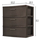 Essential Water-Resistant 32 Inch Patio Chair Cover Durable for Home Garden US 24.03 USD 25.29 USD Free shipping 5% off 7-Quart Slow Cooker Versatile Cookware for Families & Entertaining Black US 34.47 USD 36.28 USD Free shipping 5% off 20-Piece Flatware Set Dishwasher Safe Kitchen Cutlery Utensil Set Service for 4 26.1 USD 27.47 USD Free shipping 5% off Steam Iron with Stainless Steel Soleplate and Extra-Long Cord Purple for Home US 28.09 USD 29.57 USD Free shipping 5% off Durable Retractable Cord Iron w/Stainless Steel Soleplate &Anti-Drip Feature US 31.11 USD 32.75 USD Free shipping 5% off Rolling Automotive Creeper Stool Mechanic Stool with Tool Tray Storage 300-Lb 36.13 USD 38.03 USD Free shipping 5% off 12-Piece Botanica Dinnerware Set Service for 4 Bowl & Plate Set Dishwasher Safe 41.76 USD 43.96 USD Free shipping 5% off Durable Weed Popper Step Twist Pull and Pop Easy Weed Removal for Garden Yard US 27.16 USD 28.59 USD Free shipping 5% off 12-Piece Bowl & Plate Set Ceramic Dinnerware Set for Home Entertaining for Home 31.31 USD 32.96 USD Free shipping 5% off Black Cutlery Utensil Set 20-Piece Stainless Steel Flatware Set for Entertaining 36.56 USD 38.48 USD Free shipping 5% off 20-Piece Home Kitchen Stainless Steel Flatware Set Durable for Everyday Use 36.56 USD 38.48 USD Free shipping 5% off 101-Oz 500W Stainless Steel Mini Toaster Oven for Pizzas Cookies Blue TS-3430BL 34.82 USD 36.65 USD Free shipping 5% off Organize visible storage areas with Sterilite’s Weave collection. These Weave Storage items combine style and function; the trendy look of weave with the convenience, durability and value of plastic to provide a variety of décor solutions for your living spaces. The 3 Drawer Wide Weave Tower is ideal for "out in the open" lightweight storage needs. Three opaque drawers keep clutter controlled and concealed while providing access to frequently used items, where they are most often used. The easy pull handles allow drawers to open and close effortlessly, with a drawer stop to prevent drawers from being removed accidentally. When storing items away, be mindful of the weight in each drawer and don't overload. The overall assembled dimensions of this item are 15 7/8" D x 21 7/8" W x 24" H. Sterilite Adult Plastic 3 Drawer Wide Weave Tower Espresso: Outside Dimensions: 15 7/8" x 21 7/8" x 24" 3 opaque drawers keep contents concealed where they are most often used Single unit option Opaque woven pattern to add a fashion touch to your storage - Espresso Interior Dimensions at bottom of drawer: 19 1/8" x 13 1/4" x 6 5/8" Stylish weave pattern complements all décor in easy to clean, durable plastic Versatile decorative storage solution is ideal for use throughout the home Opaque drawers keep contents concealed and clutter controlled Keep frequently used lightweight items contained and organized where they are most often used BPA-free and phthalate-free You may also like 42-Can Capacity 30 QT Hard Side Cooler Portable Ice Chest Box for Picnic Fishing 21.46 USD 23.24 USD Free shipping 8% off Churu Creamy Lickable Wet Cat Treats 0.5 oz, 40 Tubes Chicken Variety US 23.98 USD 25.97 USD Free shipping 8% off Professional Cleaning Ready-to-Use Liquid Air Freshener Cherry 1 Gallon, 2-Pack 30.49 USD 32.96 USD Free shipping 7% off Compact Upright Vacuum Power Force Compact Turbo Bagless Vacuum Lightweight 2690 82.65 USD 87.0 USD Free shipping 5% off Water-Filled Plastic Outdoor Patio Umbrella Base Stand Umbrella Holder Black US 23.45 USD 25.28 USD Free shipping 7% off 2 Tier Stainless Steel Dish Rack Over Sink Over The Sink Dish Drying Rack Black 50.59 USD 62.99 USD Free shipping 20% off 20 Gallon Trash Can Stainless Steel Step On Kitchen Trash Can Closes Quietly US 86.64 USD 91.2 USD Free shipping 5% off 10 Can Cooked Diced Chicken | Freeze Dried Survival & Emergency Food Gluten-Free 63.63 USD 66.98 USD Free shipping 5% off 6 Tool Pouches Bag Roll Up Tool Organizers Small Tool Bag W/Detachable Pouches 39.59 USD 53.24 USD Free shipping 26% off NEW Electric Rock Tumbler Machine Single Drum 3LB Rock Polisher Single Barrel 65.99 USD 89.99 USD Free shipping 27% off Tabletop Propane Gas Camping 2-in-1 Grill/Stove 2-Burner for Outdoor Cook Gray 112.86 USD 118.8 USD Free shipping 5% off Double Layer Large Bread Box Kitchen Counter Wooden Large Bread Storage Bin NEW 43.99 USD 56.97 USD Free shipping 23% off